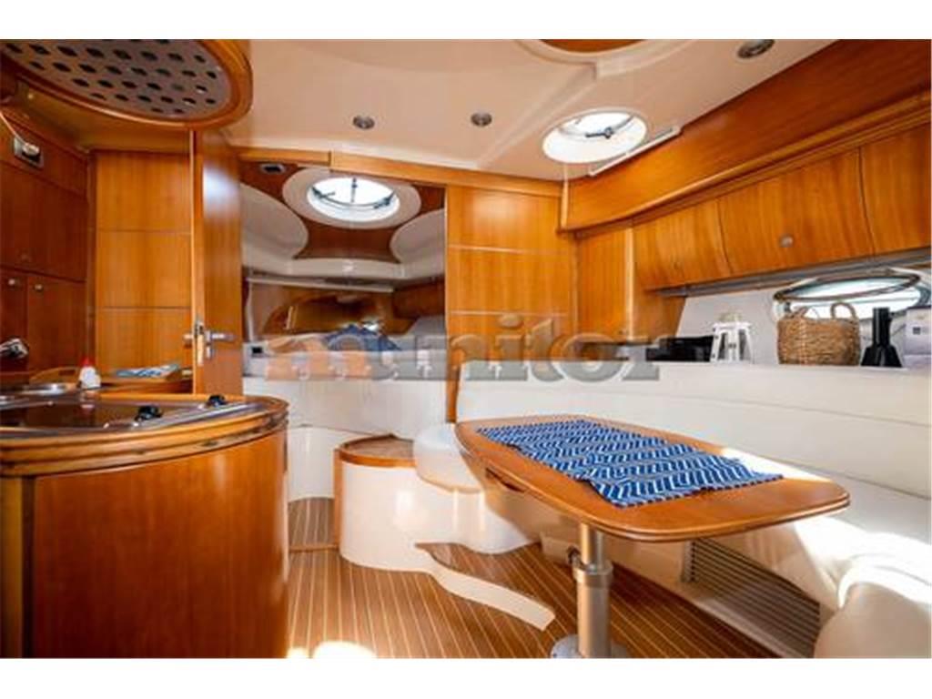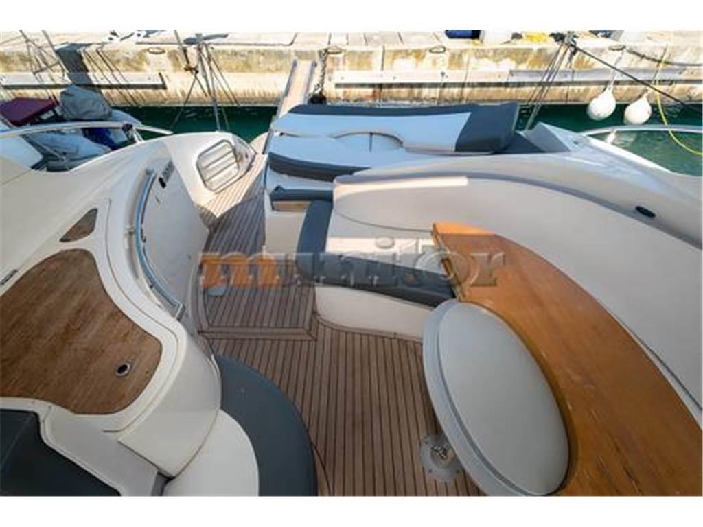 Aria condizionata, Impianto audio, Piattaforma da bagno, Caricabatterie, Elica di prua, Doccia in pozzetto, Bussola, Cuscini di coperta, Ecoscandaglio, El. throttle control, El. toilet, El.anchor windlass, Parabordi, Generatore, GPS Plotter, Hard Top, Riscaldamento, Impianto acqua calda, Passerella idraulica, TV LCD, Microonde, Teak di poppa, Stufa, Scaletta bagno, Teak in pozzetto, VHF