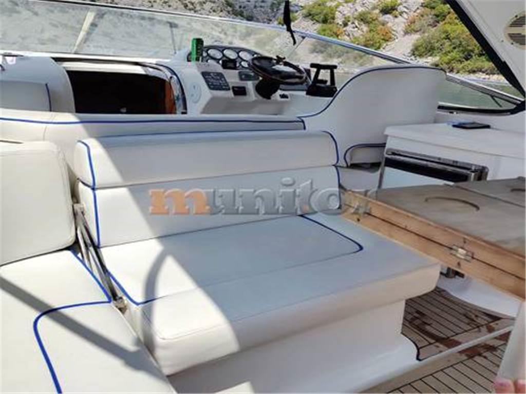 Doccia in pozzetto, Verricello elettrico per l'ancora, Plotter GPS, Caricabatterie, Impianto audio, Parabordi, Piattaforma da bagno, Scaletta da bagno, WC elettrico, Batteria di servizio, Batteria motore, VHF, Ecoscandaglio, Impianto acqua calda, Cuscini di coperta, Elica di prua, Teak in pozzetto, Teak a poppa
