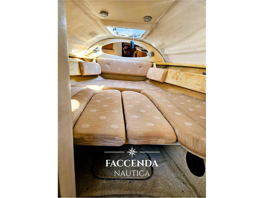Il pozzetto presenta una porta di transom a passaggio, un'area di seduta posteriore a forma di U con sedile posteriore rimovibile e un sedile di comando doppio con un supporto inclinabile a scomparsa. L'area di comando presenta un volante in legno e un pannello del cruscotto in legno di noce, oltre a gradini integrati che forniscono un facile accesso al ponte anteriore.