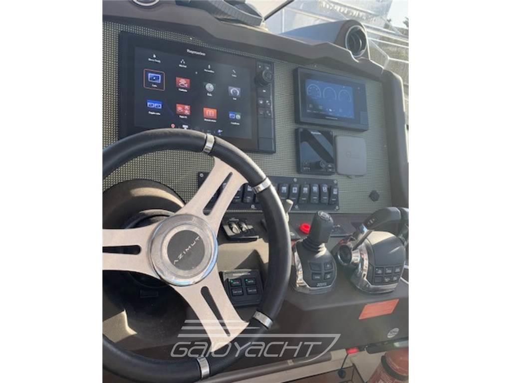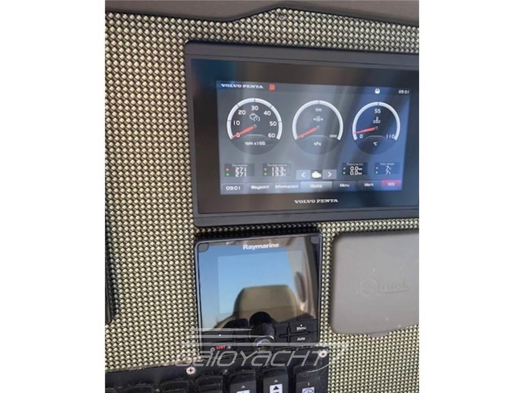 Ancora, Angolo barra, Contametri catena, Display (Raymaine Axiom Pro 12), Elica di prua - bow thruster, Faro orientabile (elettrico), Flap idraulici, Joystick (Volvo Aquamatic), Passerella (Opacmare telescopica mt. 2,54), Pilota automatico (Raymarine P70RS), Pozzetto Teak (+ plancetta), Presa 220V banchina, Presa acqua banchina, Radio VHF (Ray 90), Tavolo pozzetto
