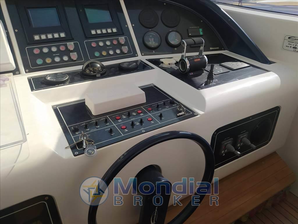 Gps, Ecoscandaglio, Bussola, Radar, Computer di bordo, Dispaly motori MTU, VHF, Comando flaps + Indicatore, Autopilota, Contamiglia, Conta catena, Tergi vetri, Whinc di poppa, Verricello con ancora e doppio comando (interno/Esterno), Angolo di barra, Elica di prua, Luci di via, Luce di fonda, Faro orientabile, Tromba, Comando trim Arneson Drive.