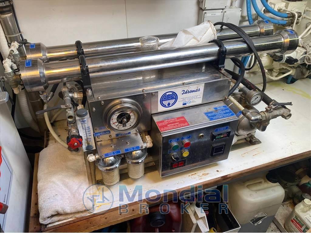 Passerella, Digitale terrestre, Impianto TV, TV esterna a scomparsa, N4 Tv interne, Radio, Stereo, Altoparlanti, Pompe di sentina, Autoclave, Doccia esterna, Boiler, Dissalatore, Wc marino elettrico (N4), Doccia interna (N4), Aria condizionata C/F, Hard To elettrico, Fabbricatore di ghiaccio, Frigo esterno, Frigo interno, Congelatore, Forno combinato, Piastra di cottura in vetroceramica, N2 Generatori, Caricabatteria, Presa corrente banchina, Impianto 12-220V, Impianto acque nere, Doppia dinette esterna, Pozzetto in teak, Tappezzeria esterna completa, Norvegese di poppa, Luci sommerse, Garage tender, Tender con motore FB, Dinette interna, Macchina del caffè.