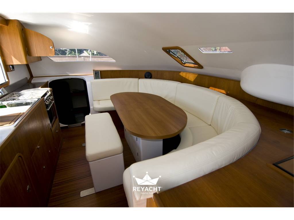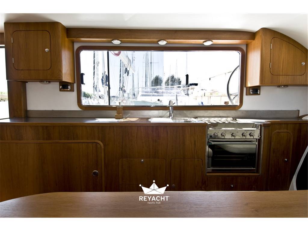Interni raffinati e funzionali: 4 cabine, 2 bagni, cucina completa con forno e dissalatore 60L/h. Ampio pozzetto in teak, prendisole a prua, bimini e dotazioni elettroniche complete.