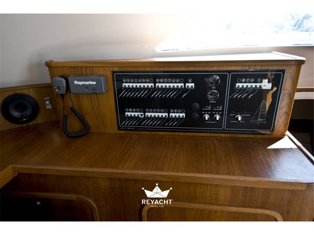 Interiores amplios y confortables: 4 cabinas, 2 baños, cocina equipada con horno y desalinizador 60L/h. Cockpit en teca, solárium en proa, bimini y electrónica completa.