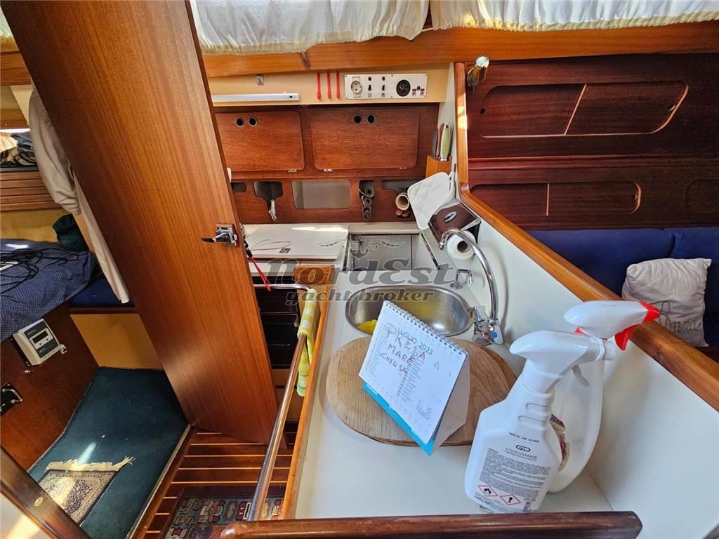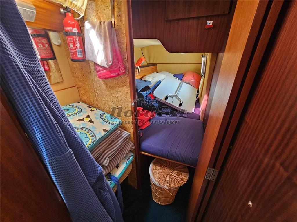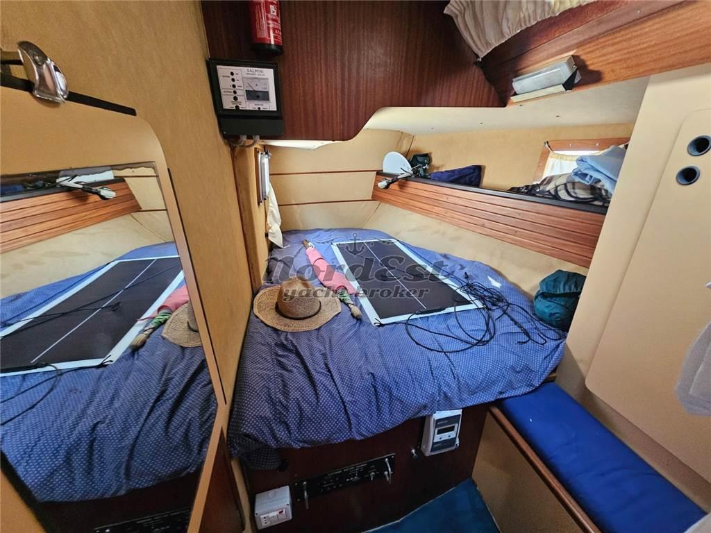 Imbarcazione con tre cabine e due servizi, timoneria a ruota, randa steccata. Ben tenuta in linea con gli anni ed il prezzo. Autopilota.