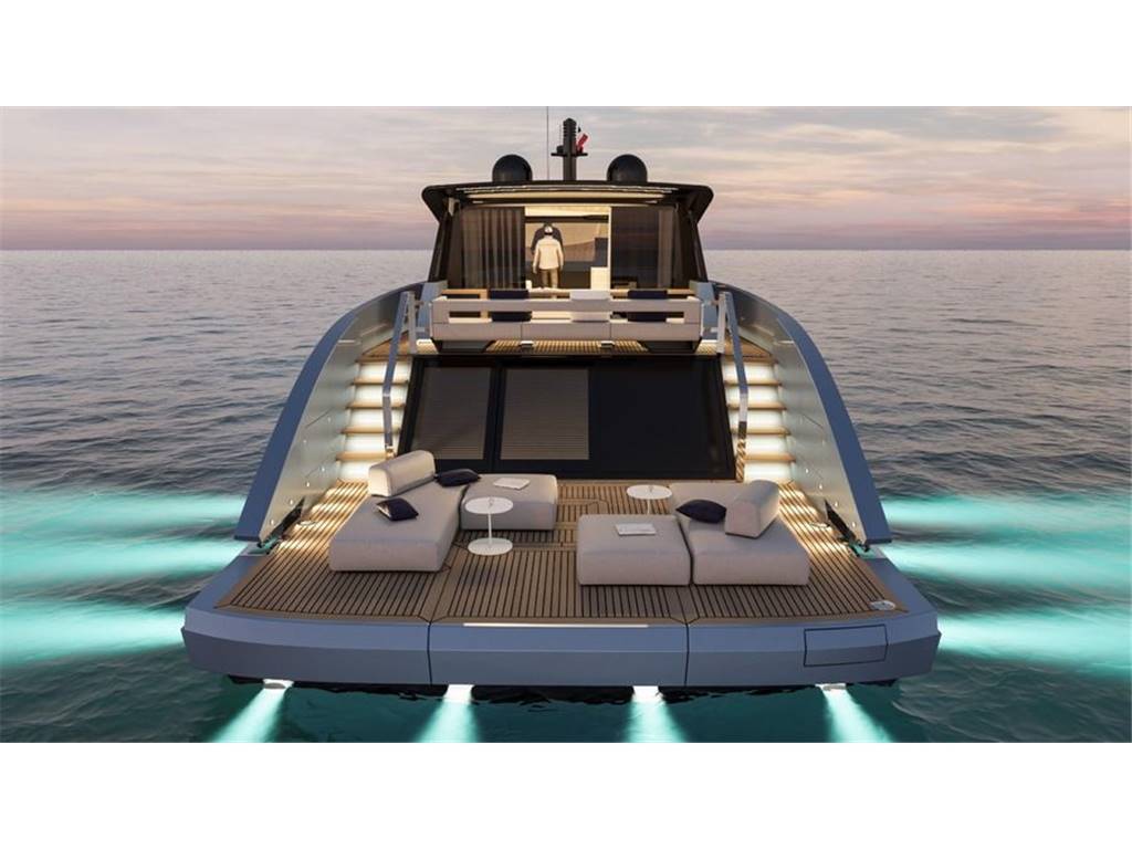 La piattaforma posteriore, dotata di spazi lounge invita al relax, mentre le scalinate laterali conducono elegantemente al ponte superiore, dove si trovano una zona pranzo all’aperto e una postazione panoramica perfetta per godersi tramonti mozzafiato. Alimentata da 2 motori Volvo Penta IPS e con la possibilita di installare un sistema di stabilizzazione a pinne o giroscopico, la Berlinetta assicura efficienza, velocità, manovrabilità e stabilità anche in condizioni difficili, rendendola ideale per crociere di lunga durata o escursioni giornaliere.
