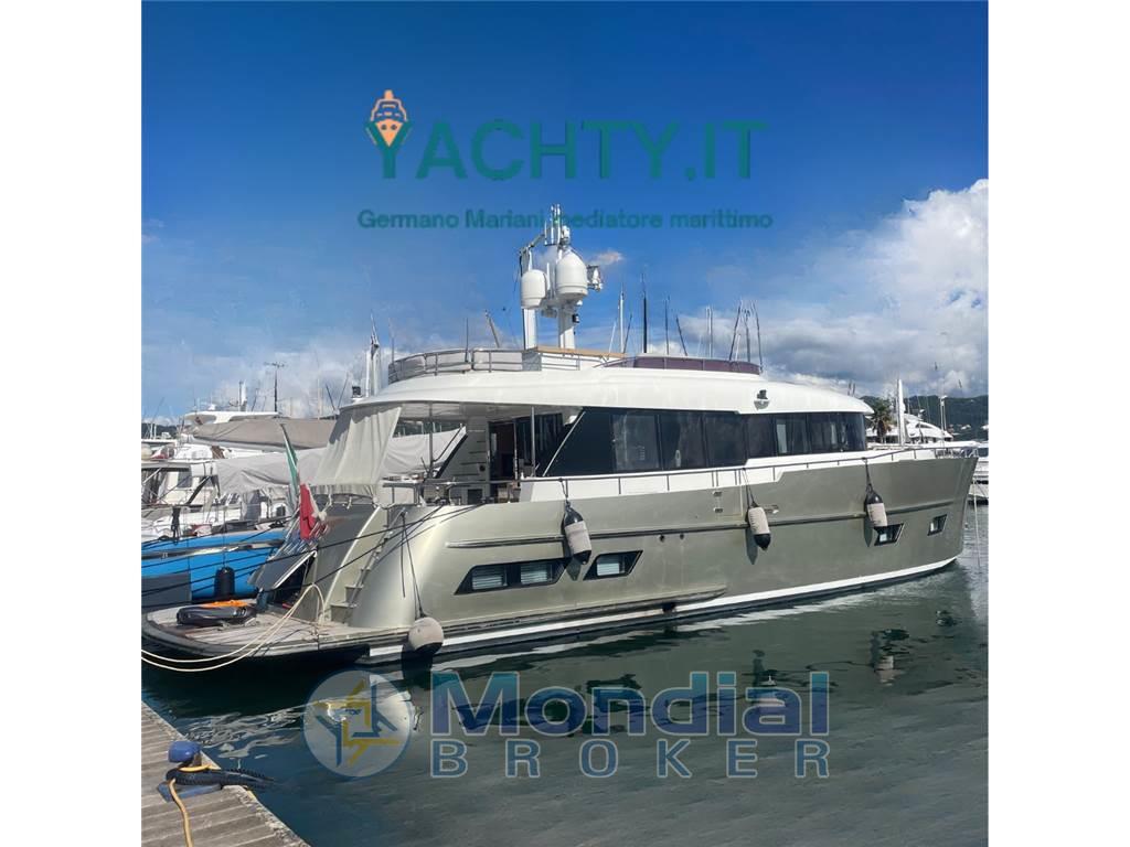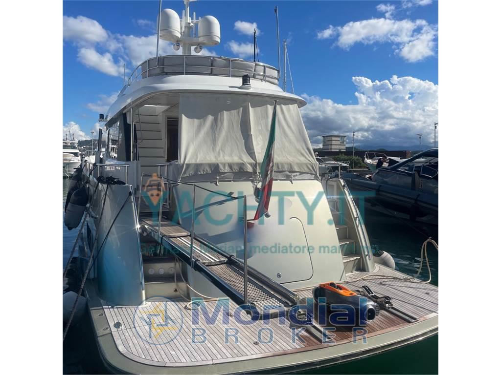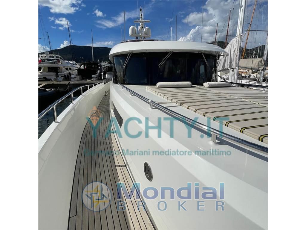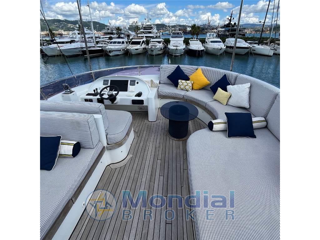 AIS, Ancora, Angolo barra, Antenna radar, Autoclave, Autogonfiabile, Bussola, Camminamenti laterali in teak, Caricabatterie, Colorazione speciale, Comando motori elettronico, Doccia esterna, Doppia timoneria, Ecoscandaglio, Elica di poppa - stern thruster, Elica di prua - bow thruster, Faro orientabile, Flap elettrici, GPS (portatile), Impianto antincendio, Impianto Aria Compressa, Indicatori Flaps, Lavaggio catena, Luci di cortesia, Luci subacquee, Passerella, Piattaforma, Pilota automatico, Plotter con antenna GPS, Pompa di sentina automatica, Pompa di sentina elettrica, Pompa di sentina manuale, Porta ingresso, Porta laterale, Pozzetto Teak, Presa 220V banchina, Presa acqua banchina (e presa mare e dolce a prua), Radar, Radio VHF, Salpa Ancore Idraulico, Scaletta da bagno, Sistema Depurazione acque nere, Stabilizzatori (Naiad), Stazione vento, Tavolo pozzetto (Marmo bianco carrara), Tromba, 2 Winch Elettrico, Yacht controller