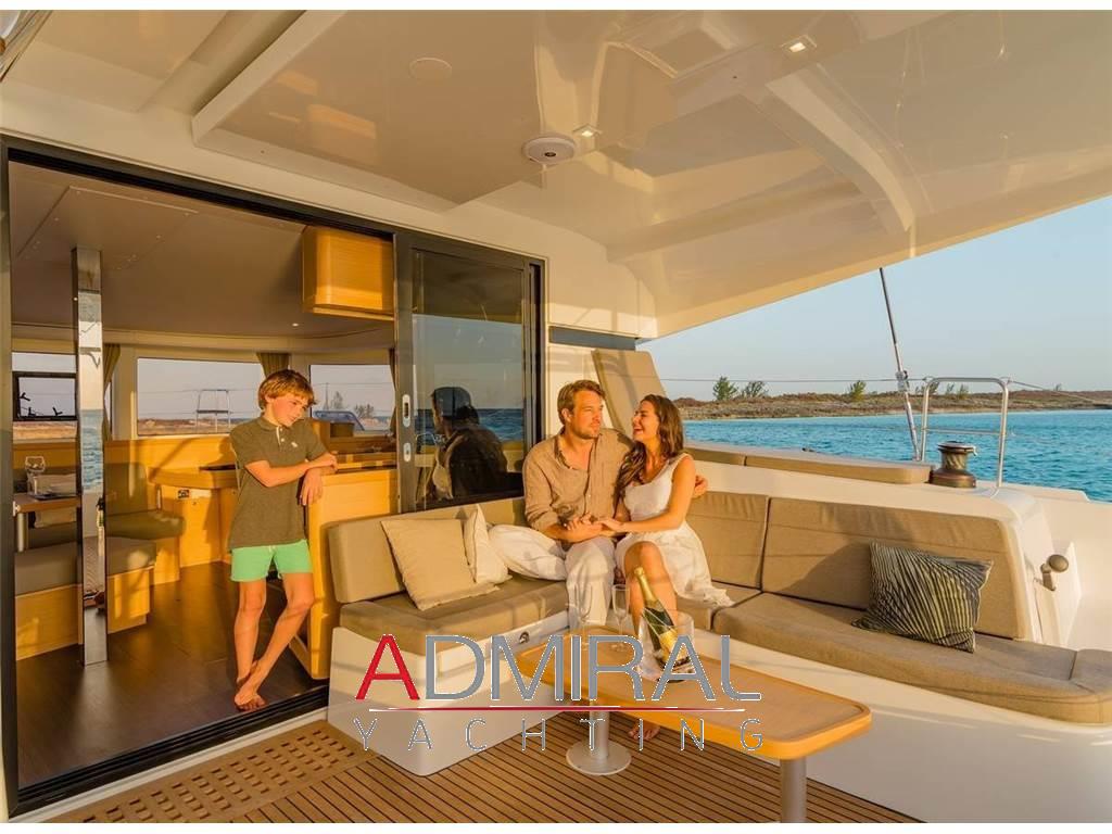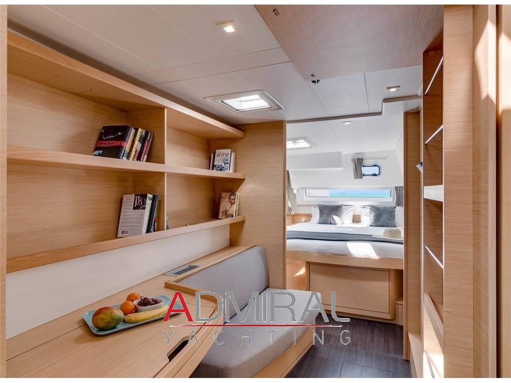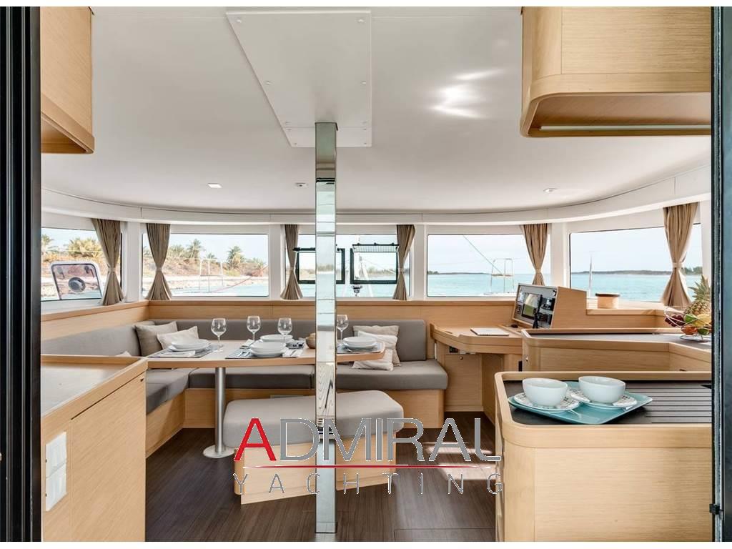 Il layout interno è in perfetta armonia con le linee esterne del catamarano. L'immensa dinette rispetta gli standard Lagoon: vista panoramica dell'esterno, bella luce, circolazione fluida, materiali scelti e durevoli
