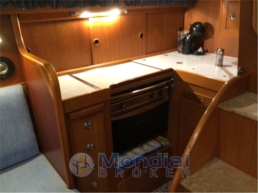 Interni in mogano - Due cabine doppie - Quadrato trasformabile - Bagno con serbatoio acque nere - Stereo CD Pioneer con altoparlanti interni ed esterni - Moquette - Tappezzerie De Lux -