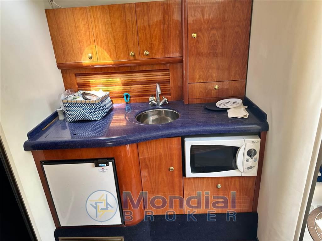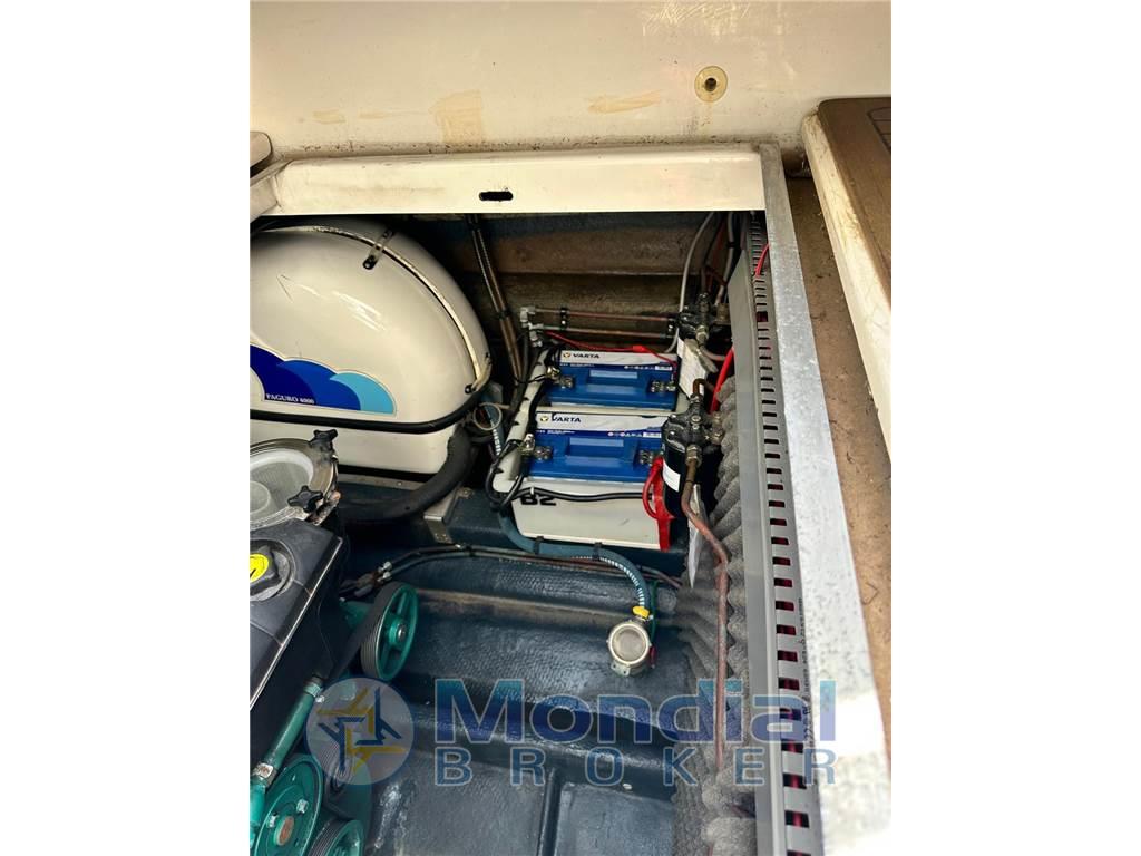 Passerella idraulica - elica di prua - aria condizionata - generatore 3,5 kW - mobile pozzetto con lavello e frigo - frigo interno - impianto TV - impianto stereo - cuscini prendisole - prua e poppa - bimini - telo copri pozzetto - plancia di poppa maggiorata.