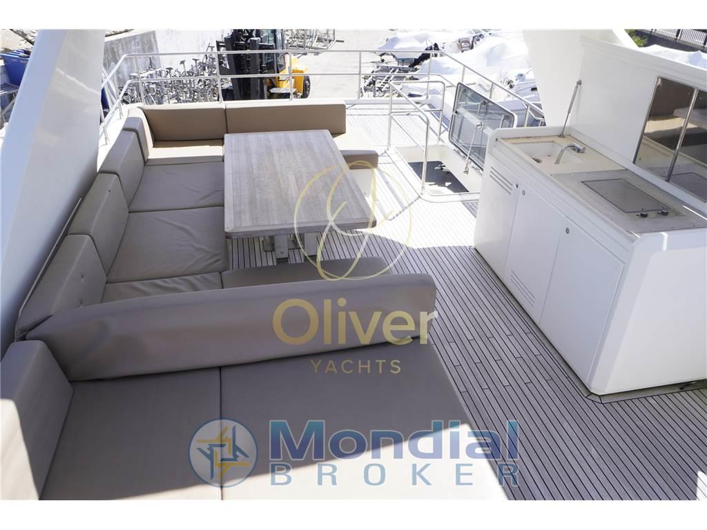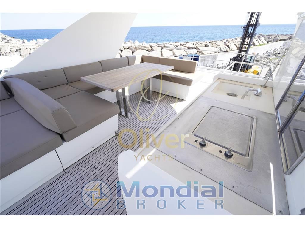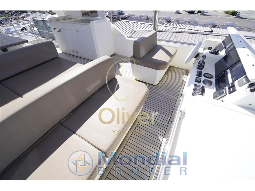 Il flybridge è un vero secondo salone open air, con zona dining, prendisole e area lounge. Gli spazi esterni sono ampi, sfruttabili e pensati per la convivialità.