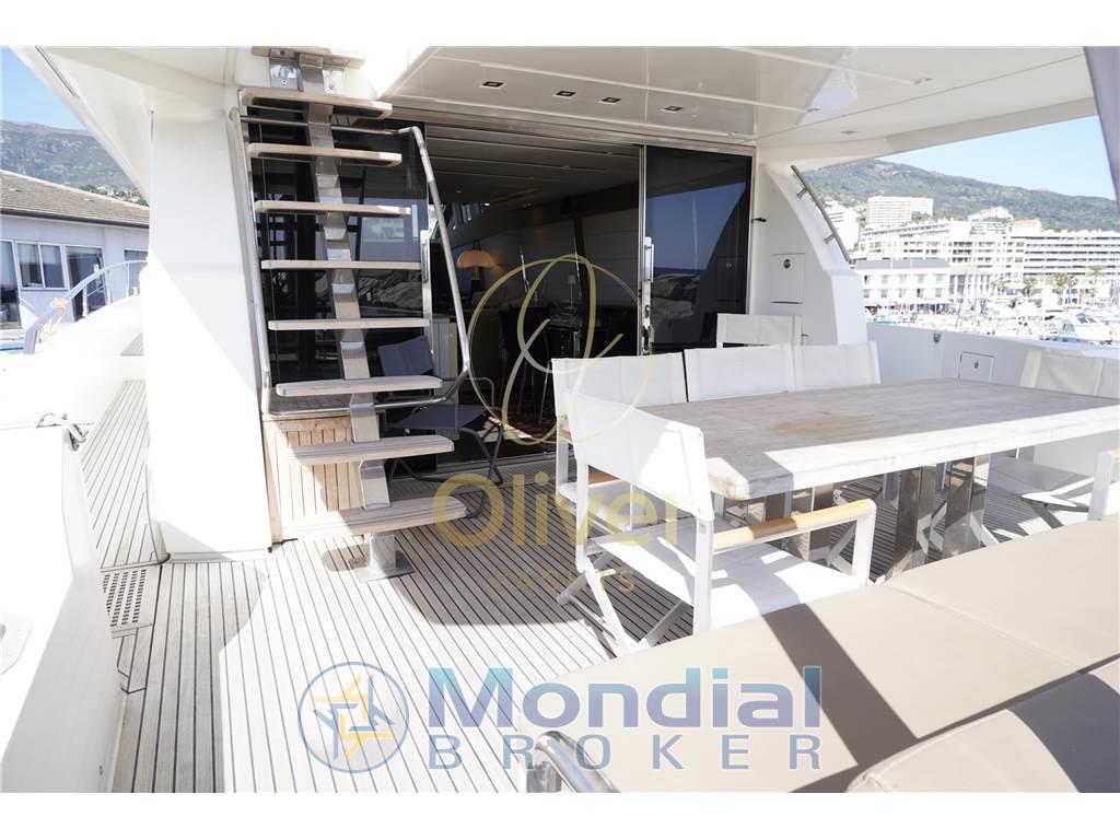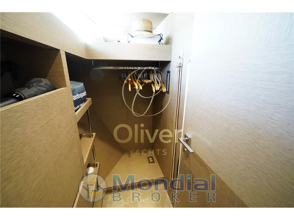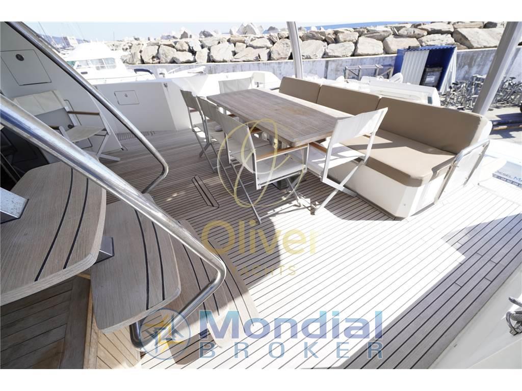 AIS (Raymarine), Allarme fumo/gas, Allarme motore, Allarme sentina, 2 Alternatore, Ancora (INOX), Angolo barra, Antenna radar (Raymarine), Autoclave, Auto-Trim, 16 Batterie, Bussola (Ritche), Camminamenti laterali in teak, Caricabatterie, Cavo corrente di banchina (Arrototalore automatico), Colorazione speciale (Wrap), Comando motori elettronico (MAN), Computer di bordo, Contametri catena (QUICK), Contamiglia (Raymarine), Contaore (BONING), Corrimano, Cronometro, 4 Display (Raymarine Axiom 16), Doccia esterna, Doppia timoneria (Più terza postazione pozzetto), DSC vhf, Ecoscandaglio, Elica di poppa - stern thruster, Elica di prua - bow thruster, Fari fissi a poppa, Faro orientabile, Fissaggio dell’ancora, Flap idraulici, Hard top (Con tenda elettrica integrata), Impianto antincendio, Indicatori Flaps, Joystick (XENTA), Lavaggio catena, Lavandino nel Pozzetto, Log (Raymarine), Luci di cortesia, Luci di navigazione, Luci subacquee, Monitor batteria, Monitor dei consumi (BONING), Parabordi, Passerella, Piattaforma (Affondante), Pilota automatico (Raymarine), Plotter (Raymarine), Plotter con antenna GPS (Raymarine), Pompa di Scarico del Serbatoio Acque Reflue, Pompa di sentina automatica, Pompa di sentina elettrica, Pompa di sentina manuale, Pompa Lavaggio Ponte, Pompa per Acqua di Mare, Ponte in teak, Porta ingresso, Porta laterale (Elettrica), Pozzetto Teak, Presa 220V banchina, Presa acqua banchina, Quadro comandi, Radar (Raymarine), Radio VHF (Raymarine), Ripetitore strumentazione, Salpa Ancore Elettrico, Scaletta da bagno, Sedile Copilota, Selle per Tender, Sistema Depurazione acque nere, Sistema di posizionamento dinamico, Stabilizzatori (Seakeeper GYRO), Stazione vento (Raymarine), Strumenti di misura per motori (MAN), Tavolo pozzetto, Tientibene con cancelletti, Tromba, Tuga in teak, 2 Winch tonneggio di poppa (QUICK), 2 Winch tonneggio di prua (QUICK)