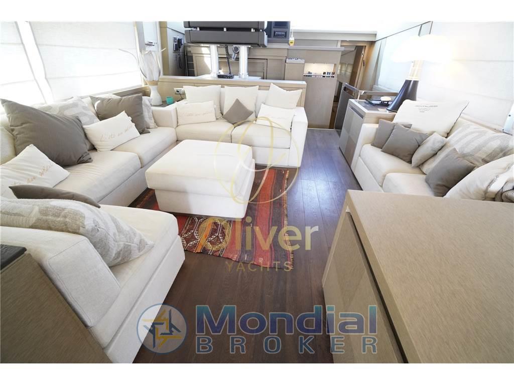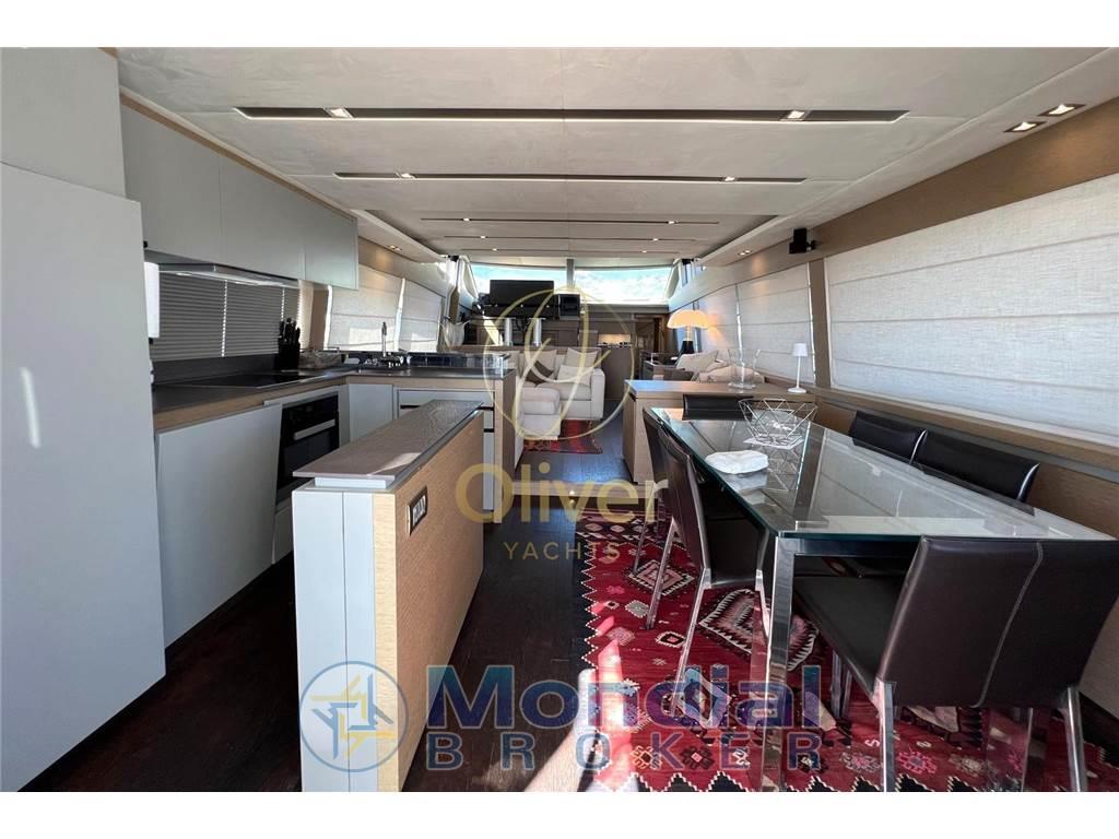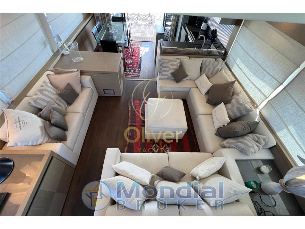 Gli interni della Prestige 750 sono progettati per offrire volume, luce naturale e funzionalità reale. Il salone principale è ampio, con grandi finestrature panoramiche che garantiscono luminosità costante e vista aperta sul mare. La zona living è ben separata dalla dining area, creando ambienti distinti ma fluidi.