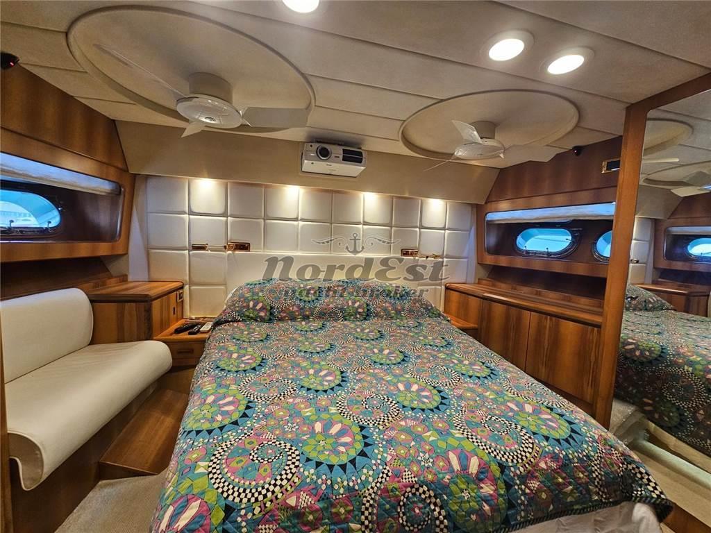 Interni composti da cabina armatoriale, 2 cabine ospiti, cabina marinaio, sala, cucina, plancia di comando interna e sul fly-bridge, prendisole di prua, pozzetto, impianto di aria condizionata e riscaldamento indipendente per ogni ambiente, 2 generatori KOHLER da 26 kW ciascuno, dissalatore e tutti gli optional indispensabili per essere indipendenti.