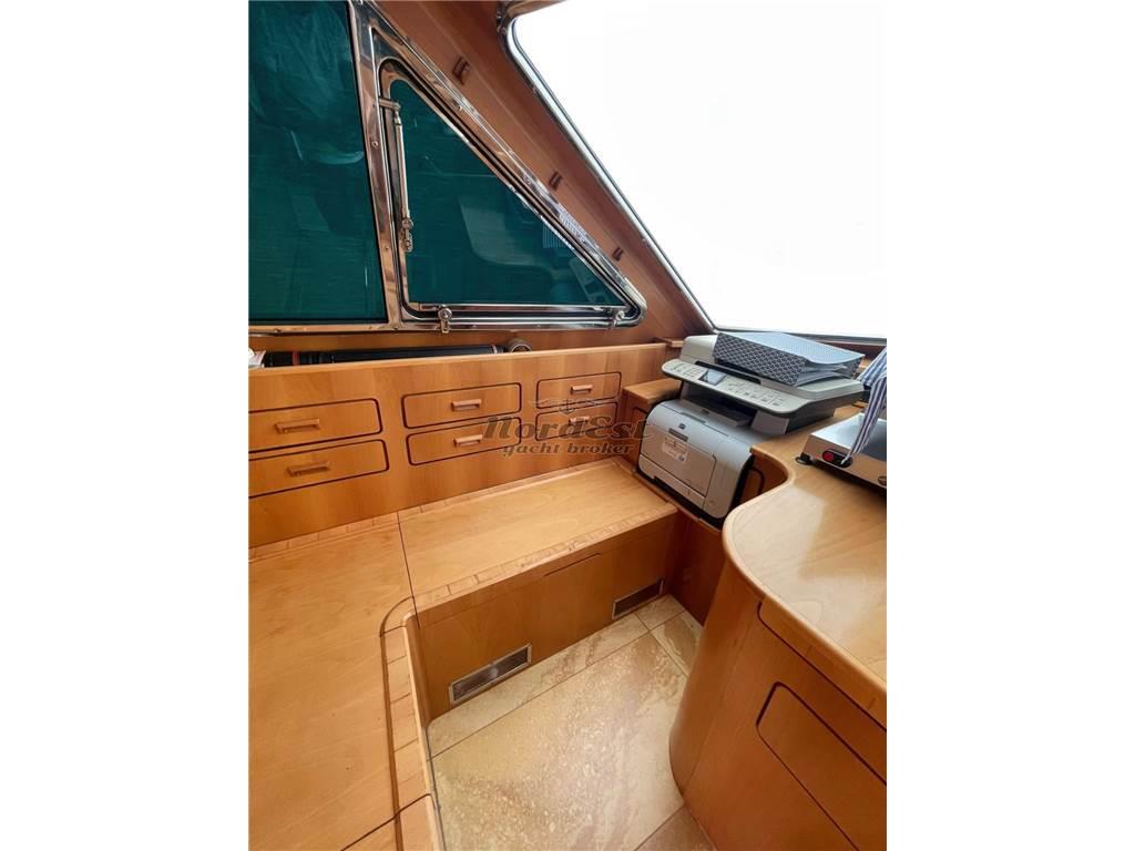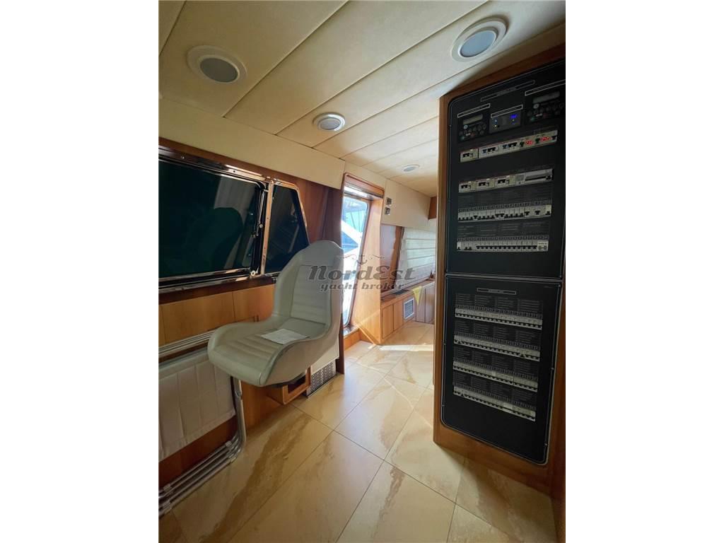 Il fly-bridge dispone di una seconda postazione di comando completa di tutta la strumentazione presente nella plancia di comando principale, secondo GPS, tavolo con 10 sedute e idonea illuminazione, ampio frigorifero a pozzetto e freezer a pozzetto (-20 °C).