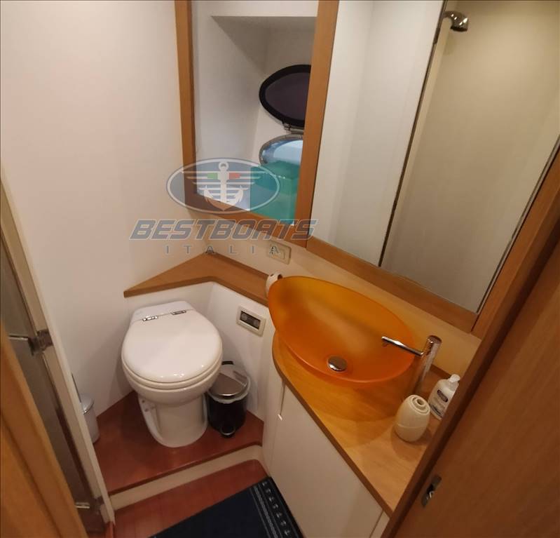 Cabina armatore a centro barca con letto matrimoniale, bagno con box doccia