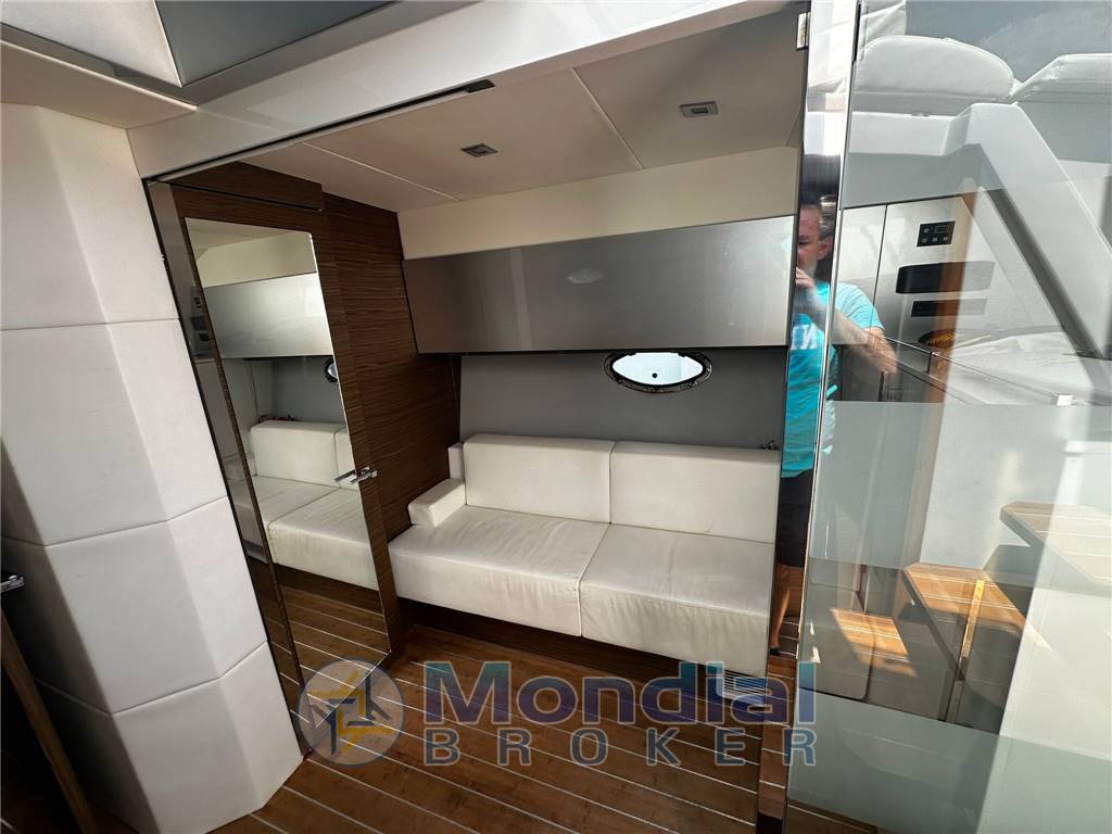 Porta scorrevole per ingresso in barca, dinette con seduta murata dx, cucina a L verso prua confinante con cabina VIP dotata di frigo interno, piastra ad induzione a due fuochi, cabina armatoriale ampia disposta a tutto baglio a centro barca con servizio dotato di doppia entrata.