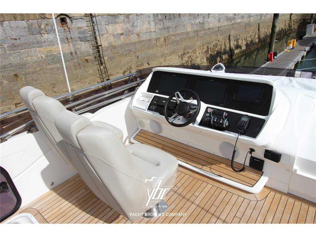 Lo sportfly, ampio e ben organizzato, include un mobile con piastra BBQ, una zona pranzo con tavolo e divano a U che occupa l’intera area poppiera del Fly, zona di guida con doppia seduta e un ulteriore divanetto a dritta. L’area è ombreggiabile grazie a un bimini top a movimentazione elettrica.