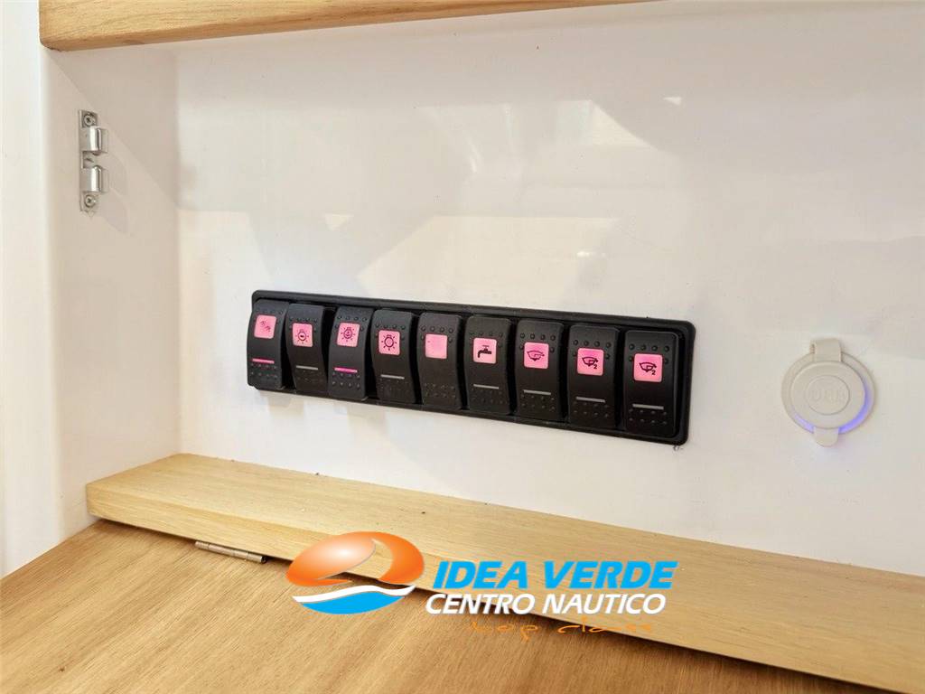 Tutta la strumentazione è posizionata in modo ergonomico sulla console di guida, con interfacce intuitive e leggibili, offrendo al comandante il massimo controllo in ogni fase della navigazione. Una dotazione tecnica che rende il Libeccio 8.50 Cabin adatto anche a navigazioni più impegnative e a crociere costiere in totale serenità.