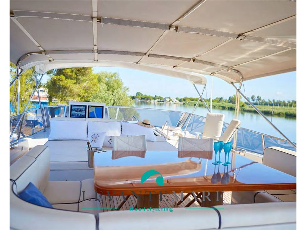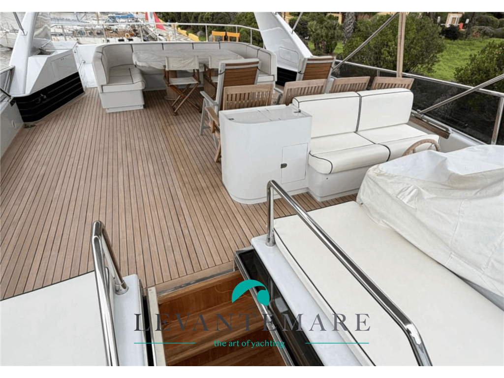 Refit completo a fine 2023: riverniciatura e teak dove avariato; batterie nuove; spiaggetta di poppa idraulicamente sommergibile, per sollevare il tender in sicurezza; la canoa, il SUP o altre attrezzature o giochi d’acqua; terrazzo sul fly per uso prendisole, fino a 6 sdrai o poltrone reclinabili.