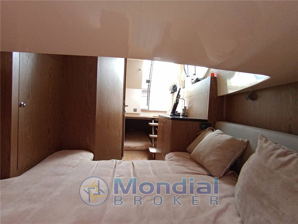 Gli spazi interni offrono due cabine doppie separate, una a prua e una a poppa, oltre a una dinette trasformabile. L’altezza interna sfiora i due metri, con volumi ben distribuiti e passaggi comodi. Il bagno è indipendente, con doccia separata, e sfrutta al meglio la larghezza dello scafo.