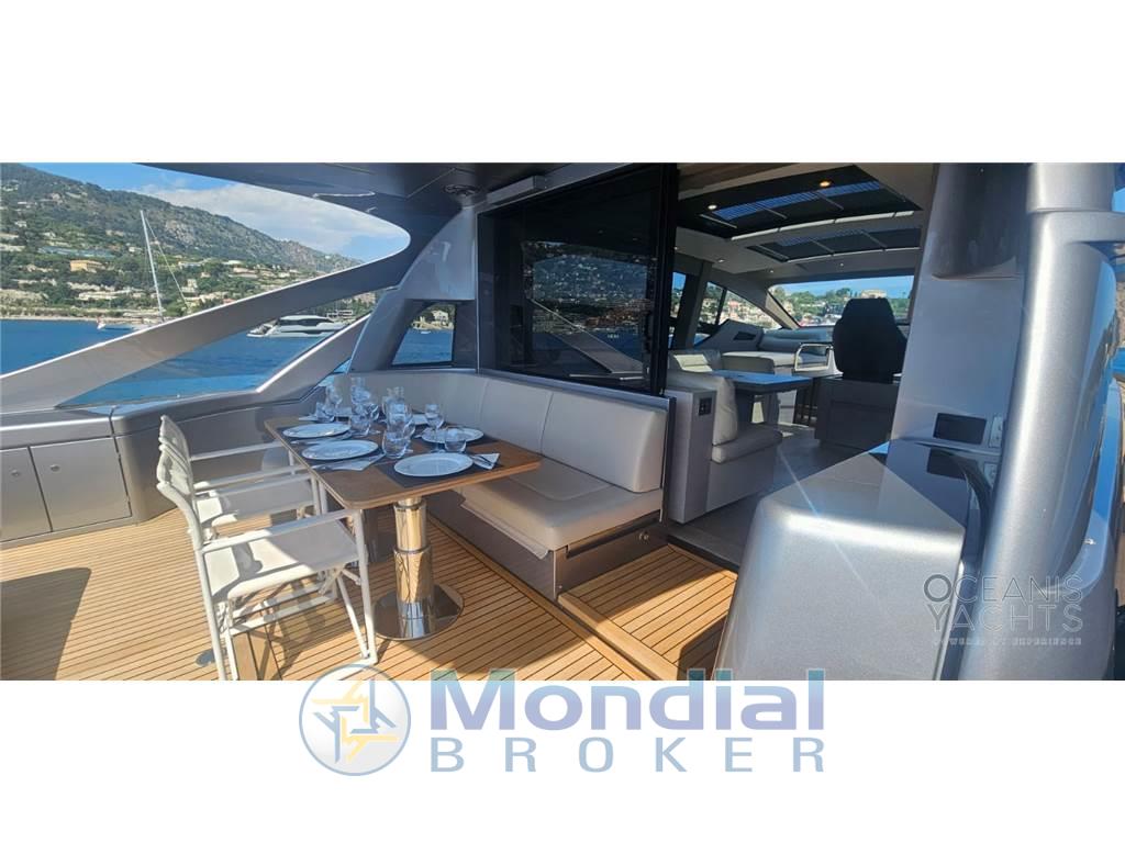 Acqua Calda, Altoparlanti (Heaven Audio premium system, 8 speakers, Custom 900Kw subwoofer), Aria condizionata (Tropical AC in all cabins & upper saloon (90,000 BTU)), Blu-ray, Carte nautiche, Clima reversibile, Collegamento internet, Congelatore, Cucina, Cuscineria completa, Cuscineria di poppa, Cuscineria di prua, Dissalatore (Idromar 130L/h, remote control on dashboard), Dotazioni di sicurezza entro 12 miglia, Dotazioni di sicurezza entro 50 miglia, Dotazioni di sicurezza oltre 50 miglia, Forno, Frigorifero esterno, Frigorifero interno, Giubbetti di salvataggio, ICE Maker, Impianto acque nere, Indicatore del serbatoio del carburante, Indicatore del Serbatoio dell’Acqua, Indicatore del Serbatoio delle Acque Reflue, Lavasciuga, Macchina caffè, Piastra elettrica, Piastra in vetroceramica, Prese interne 12v, Prese interne 220v, Radio AM/FM, Serbatoio Acque Nere, Stereo, Telecamera (Cameras in engine room & aft exterior), Tende, TV (Main Saloon: 49” with TV lift, VIP Cabin: 43”. Master Cabin: 65”, Twin Cabin: 24”), 4 WC marino elettrico, Zattera di salvataggio