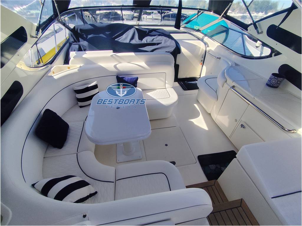 Pozzetto in teak, dinette in pozzetto con divani a “C” e tavolo in massello regolabile in altezza e in larghezza, Divani in pozzetto fronte via, Mobile in pozzetto con lavello e frigorifero, Ampio prendisole di poppa a tutto baglio con passaggio centrale, Prendisole di prua completo, Doccia esterna calda e fredda con miscelatore, Boiler acqua calda bivalente, Luci di cortesia, serbatoio carb strutturale