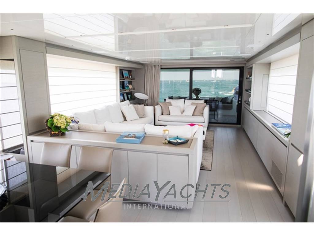 Aft a large cockpit with sofa and Roda fabrics, an huge lifting platform, and a garage capable of containing a tender and water toys.