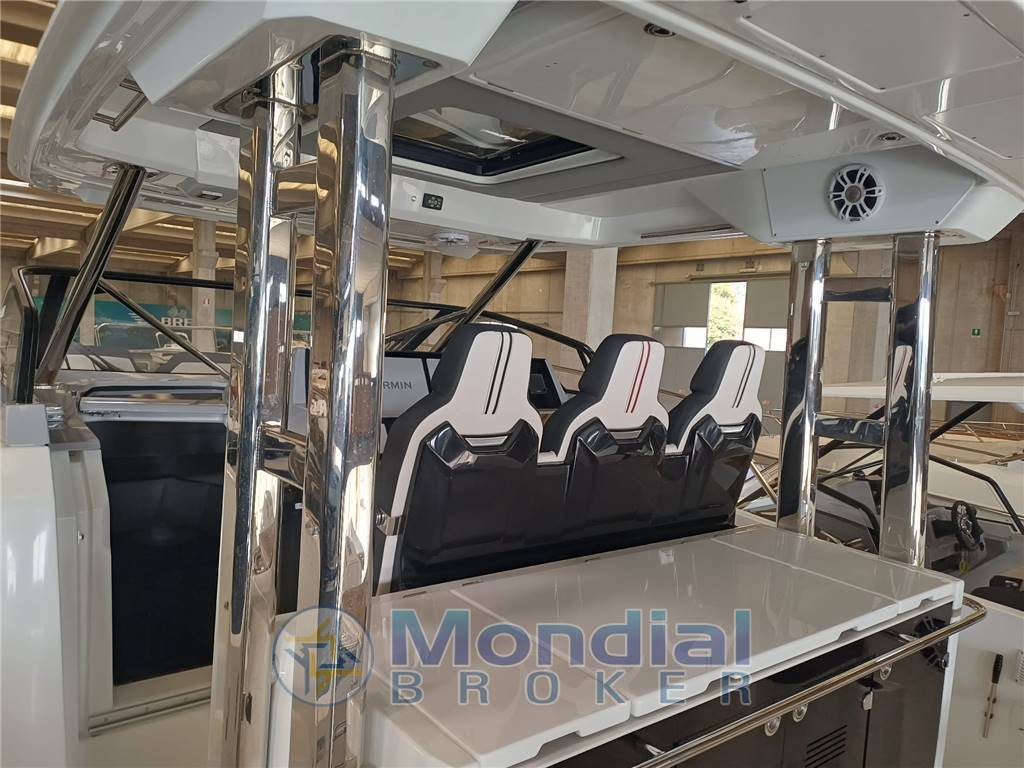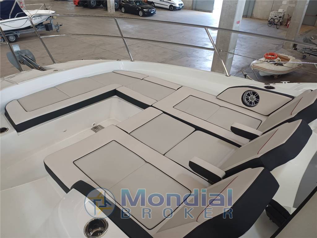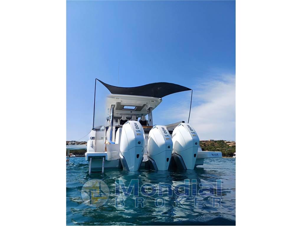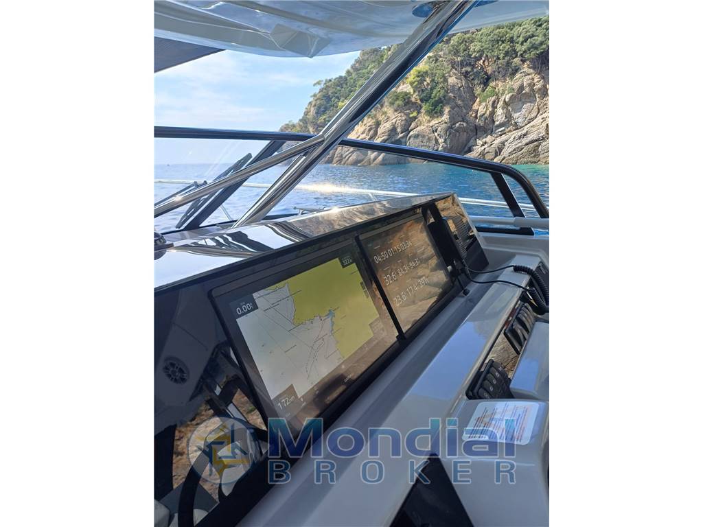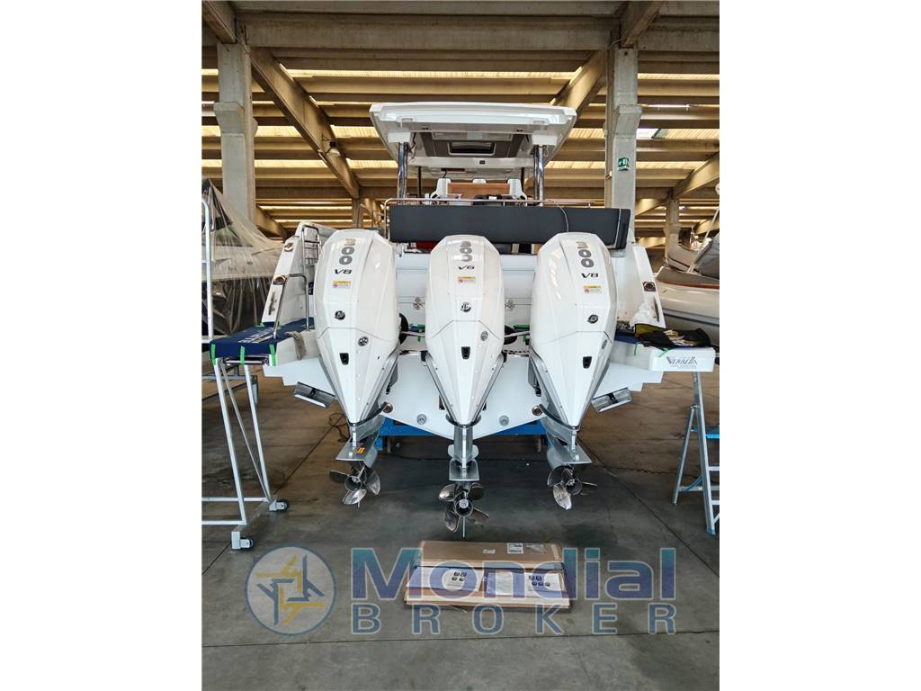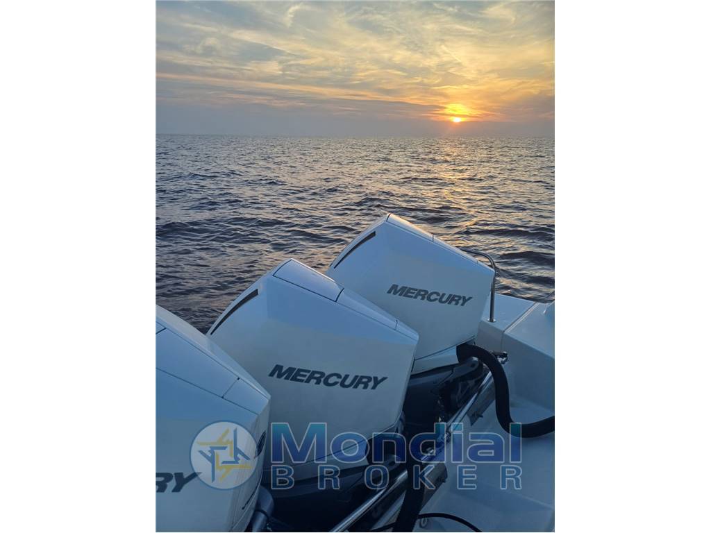 Telo copriprendisole di prua – Telo copri 3 sedili plancia – Telo copri divano a L nel pozzetto, Telo copri tavolo – Teletta parasole traforata nera con pali in carbonio nella parte di poppa – Teletta parasole traforata nera con 4 pali in carbonio nella parte di prua – VHF – 2 schermi 16” GARMIN – GPS – Ecoscandaglio – Radar – Sistema integrato Mercury negli schermi Garmin per monitoraggio dei consumi e parametri motori – Flaps Lenco – Radio Stereo integrata negli schermi GARMIN FUSION con Subwoofer ed Amplificatore e funzione bluethoot– n.3 Frigoriferi di cui uno in cabina e due nel pozzetto – Toilette separata con box doccia separato, WC elettrico ad acqua dolce e serbatoio acque nere – Elica di Prua – Verricello elettrico – Balcone abbattibile elettricamente con seconda scaletta bagno – Luci a LED nel pozzetto e cabina – Coppia di luci subacquee a poppa – Cucina in cabina con fornello a gas, frigorifero e lavello – Mobile bar nel pozzetto con ampio piano di lavoro- due lavelli e due frigoriferi e ghiacciaia IGLOO