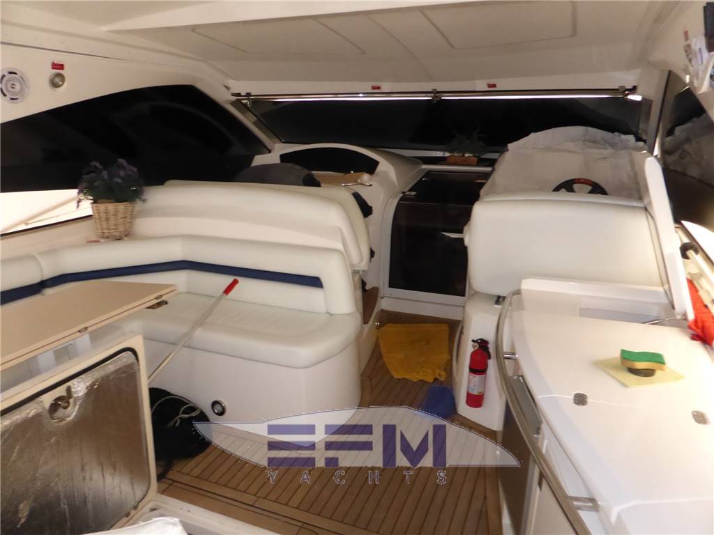 Lights in the cockpit - bow thruster - double fridge - complete mobile plate and icemaker in the cockpit - reporting facility opening portholes' and ladder - icemaker complete safety equipment Italian legislation x x 8 persons - complete set of kitchen linens and cabins - courtesy lights - teak cockpit and aft deck - plus hydraulic gangway with teak insert - 1 aft mooring winches - complete canopy closure - sunbathing in white ski - anchor chain and windlass remote control - Fenders - air-conditioned double hot-cold water - toilet ellettrico - Chargers - generator - Stereo - TV system - radio cd + HIFI - Hard top electric compass opening - ladder - black water system - stern shower with hot and cold water - Garage and roof electric opening -