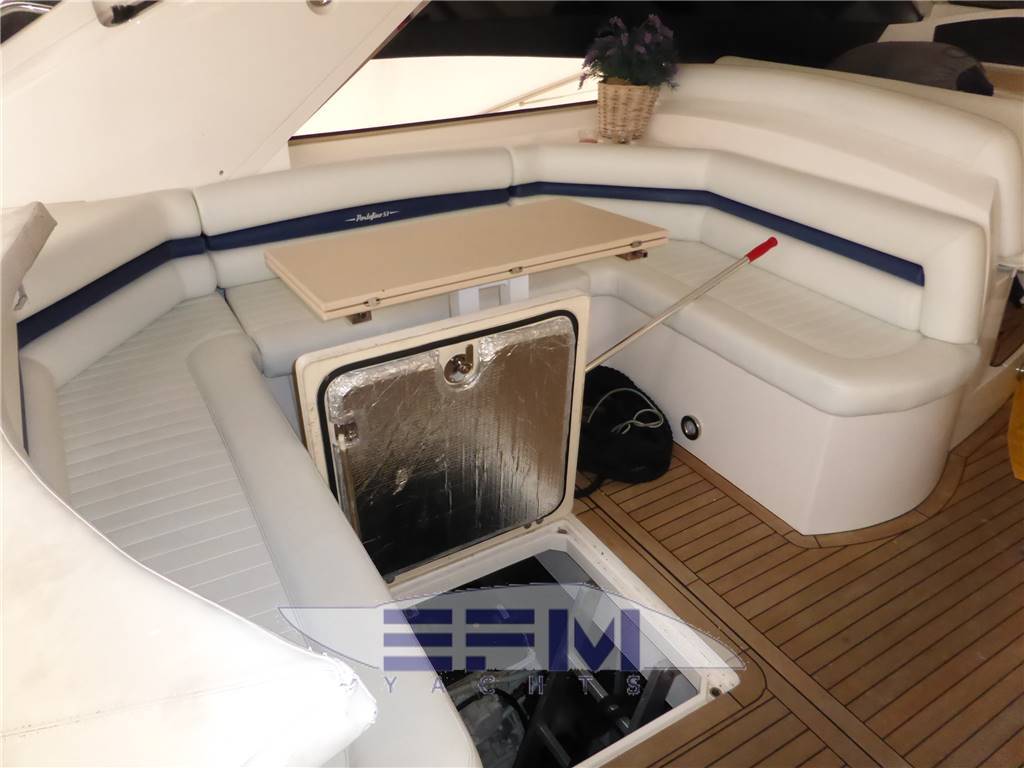 Bellissimo PORTOFINO 53' versione MKI con scafo bianco e murate blue - Barca totalmente refittata nel 2025/2026. Manutenzione straordinaria 2025 dei MOTORI MAN 2x800cv (circa 800 ore) + rifacimento della sala macchine - Elica di prua - Hard top a movimento a compasso elettrico ripitturato e revisionato nel 2025- Tavolo pozzetto ribaltabile a scomparsa nel divano - Antenna SAT - Faro esterno - Generatore Kohler 12 kw revisionato 2025 - Radar Raymarine - Impianto di climatizzazione con termostato e comando separato in ogni ambiente - Pozzetto e spiaggetta di poppa in Teak rifatto nuovo 2025 - Garage poppa con slitta per alo tender - Passerella idraulica a scomparsa revisionata 2025 - Mobile cucina con lavabo, grill e icemaker in pozzetto - Nuovi tendalini di copertura + chiusura camper poppa - Cuscinerie prendisole prua e poppa tutte rifatte nuove 2025 - 2 Winches tonneggio poppa - Layout interni con 3 cabine e 2 bagni - Pitturazione mobili interni / pavimento e rifacimento tappezzerie 2025/2026 - NO PERMUTA - INFORMAZIONI PIU' DETTAGLIATE CON LISTA DETTAGLIATA DEI LAVORI E FOTO ORIGINALI 2026 SOLO PER MAIL -
