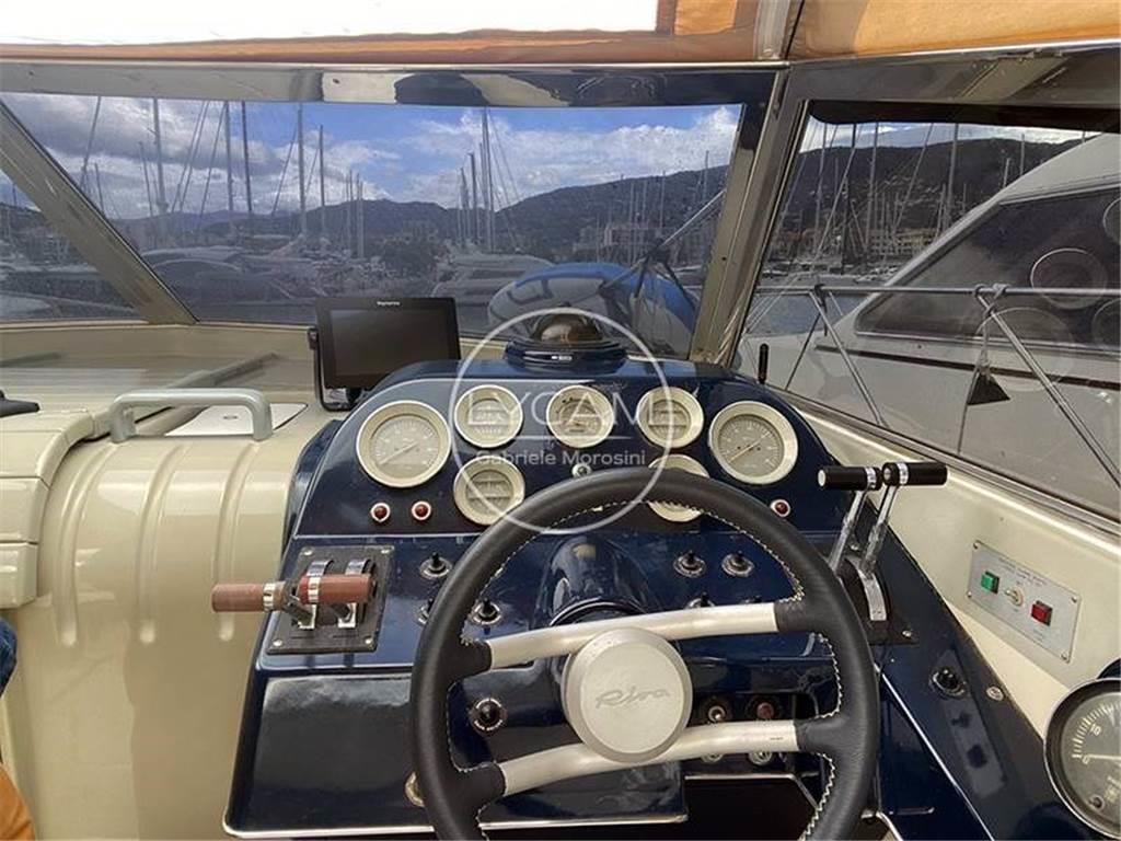 Strumentazione originale VDO per Riva (contagiri, manometri pressione olio motori, manometri pressione olio invertitori, termometri temperatura acqua, amperometri, conta ore); Bussola; VHF; GPS Raymarine; Impianto HI-FI; Leve gas motori.