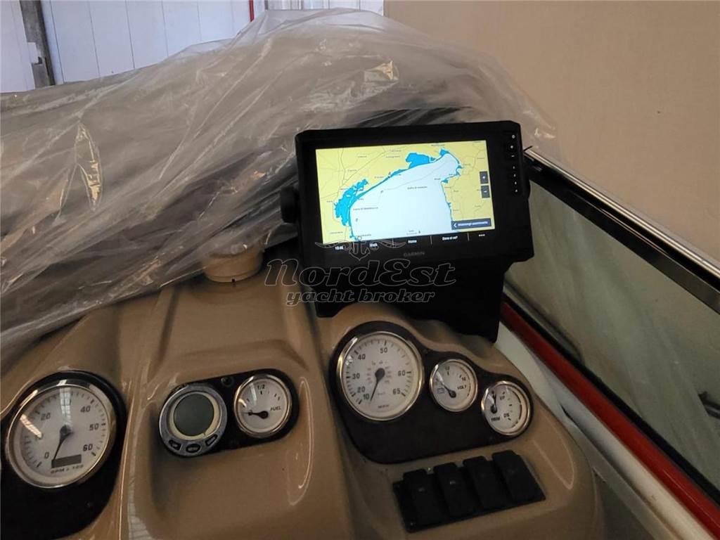Natante in condizioni impeccabili, ottima costruzione, solo 410 ore di moto. Tenda chiusura pozzetto nuova. Manutenzione certificata periodica. Antivegetativa 2025, Colore blu e lucidatura di tutte le finacate anche internamente 2025, Telo copri barca blu e telo copri cruscotto 2025, Tagliando motore completo 2025, Piano induzione, radio Fusion con BT, luci led e luci blu subacque, antenna e vhf, Garmin eco map UHD2 92SV + cartografia Adriatico Navionics vision e trasduttore poppa multifunzione.