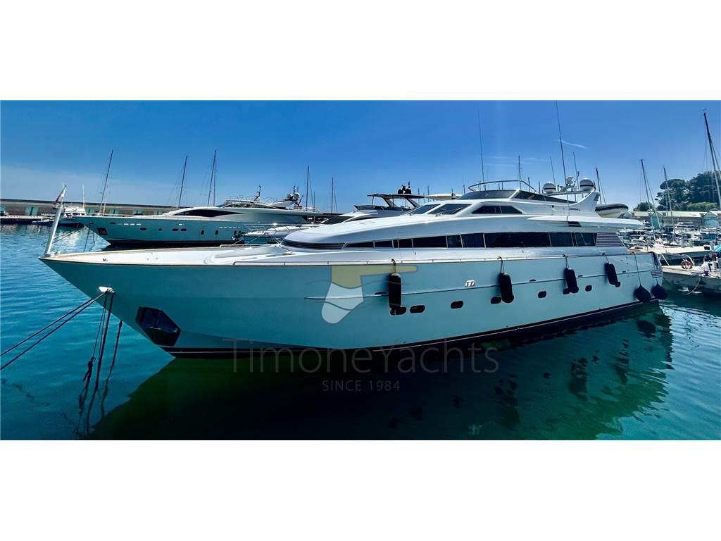 AIS, Antenna radar, Camminamenti laterali in teak, Contametri catena, Display, Doccia esterna, Elica di prua - bow thruster, Flap idraulici, Gruette per tender su fly, Impianto antincendio, Indicatori Flaps, Luci di cortesia, Luci di navigazione, Luci subacquee, Passerella, Piattaforma, Pilota automatico, Ponte in teak, Porta ingresso, Porta laterale, Pozzetto Teak, Radar, Radio VHF, Sistema Depurazione acque nere, SSB, Stabilizzatori (CMC MARINE srl type SE 060-120HS ZERO), Stazione vento, 2 Tavolo pozzetto, Tromba, Winch tonneggio di poppa
