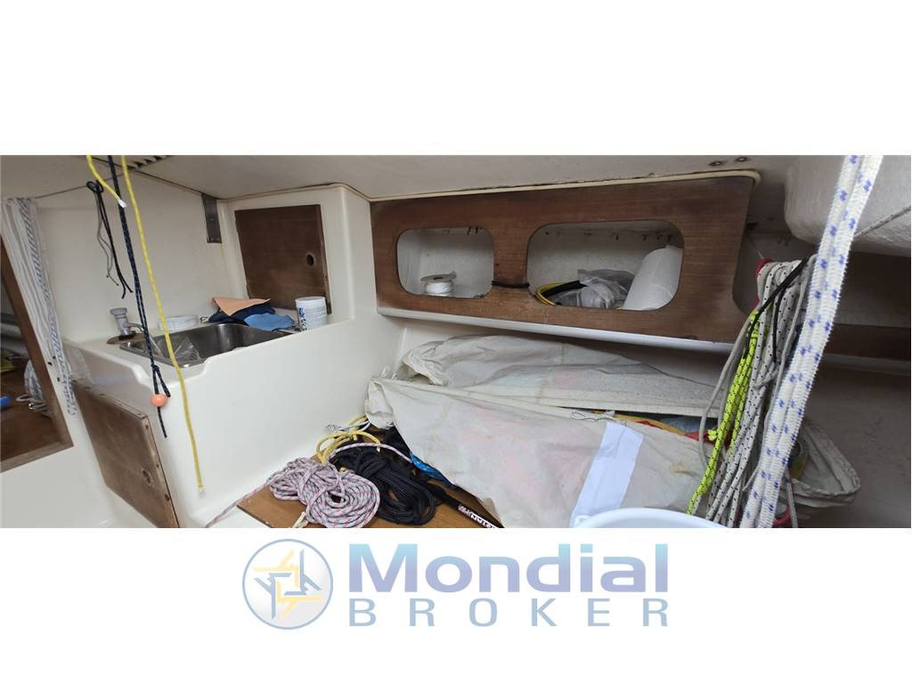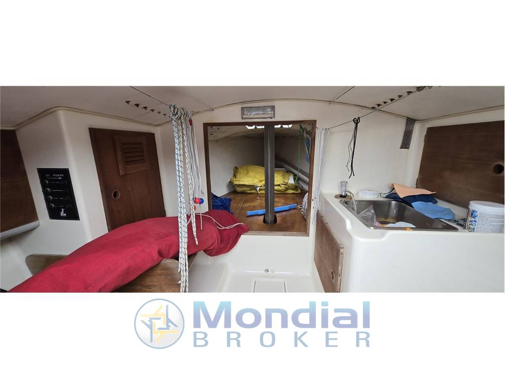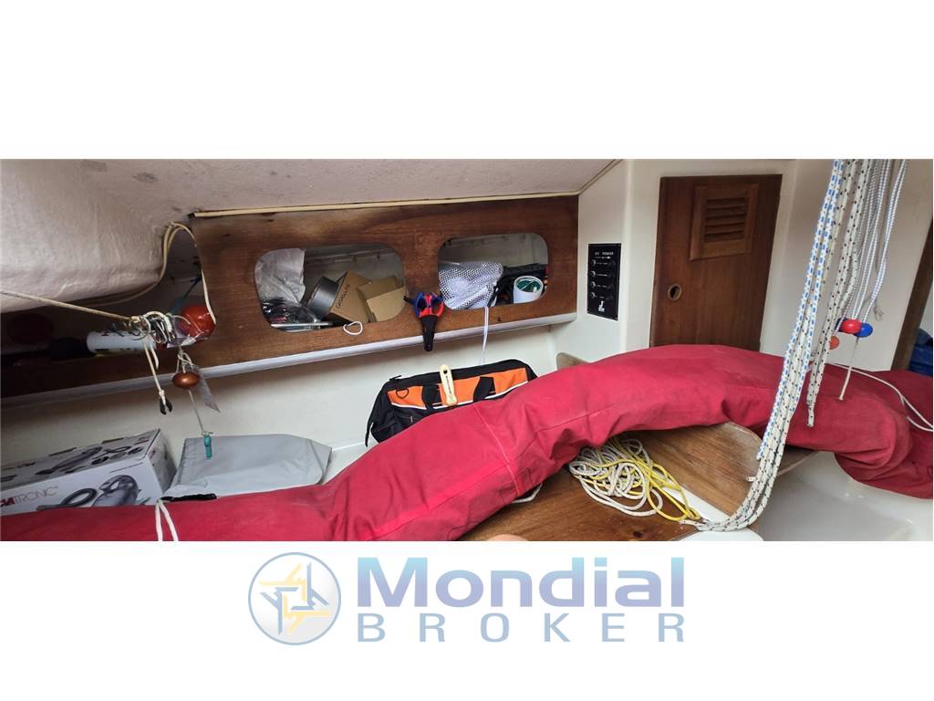 Interni in legno in buone condizioni generali, semplici ed essenziali come da configurazione di classe. Spazi funzionali con cuscineria interna (4 posti) in ottimo stato, ideali per brevi soggiorni a bordo o utilizzo durante le regate. Ambiente ordinato e ben mantenuto.