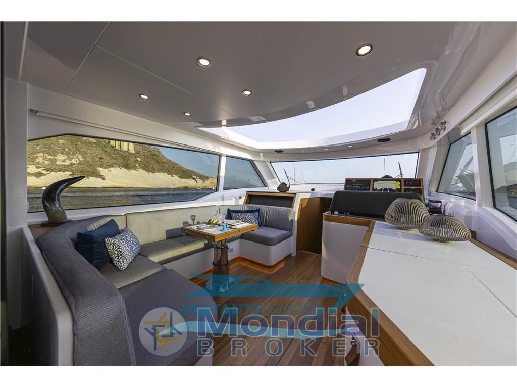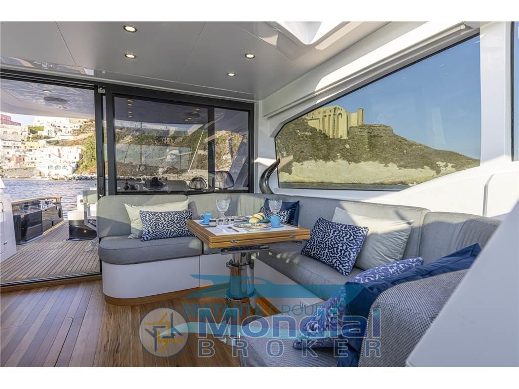 Ideale per condividere momenti con amici o famiglia, è progettata per massimizzare il comfort e l’interazione tra gli ospiti, offrendo viste e tramonti mozzafiato attraverso le ampie vetrate della dinette.