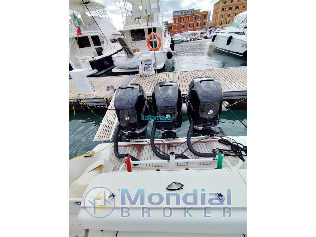 Main accessories: GPS - Bow thruster - AXIOM RAYMARINE 16" digital instrumentation with dual screens and 1kW professional probe - 2025 upholstery - AZIOM integrated Vesselview - Custom wrapping - Autopilot - Gangway - Speakers - Stereo - Folding benches - Livewell and catch well