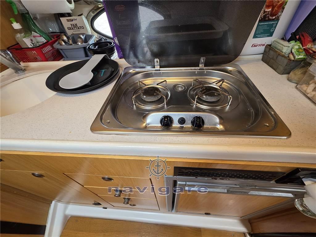 Antenna Satellitare TV, Boiler, Copripozzetto, Cucina (interna ed esterna fuochi a gas), Cuscineria completa, Frigorifero interno, Impianto acque nere, Impianto TV, Pavimento interno in legno, Prese interne 12v, Prese interne 220v, Radio AM/FM, Stereo, Tendalino, TV, WC marino elettrico