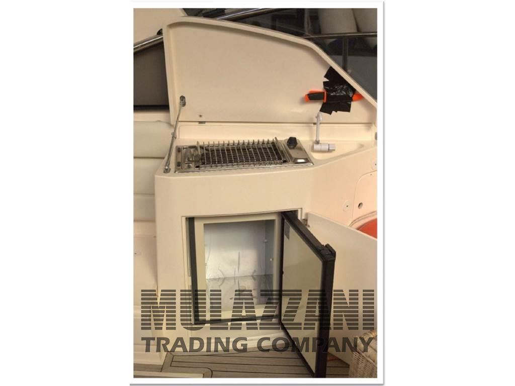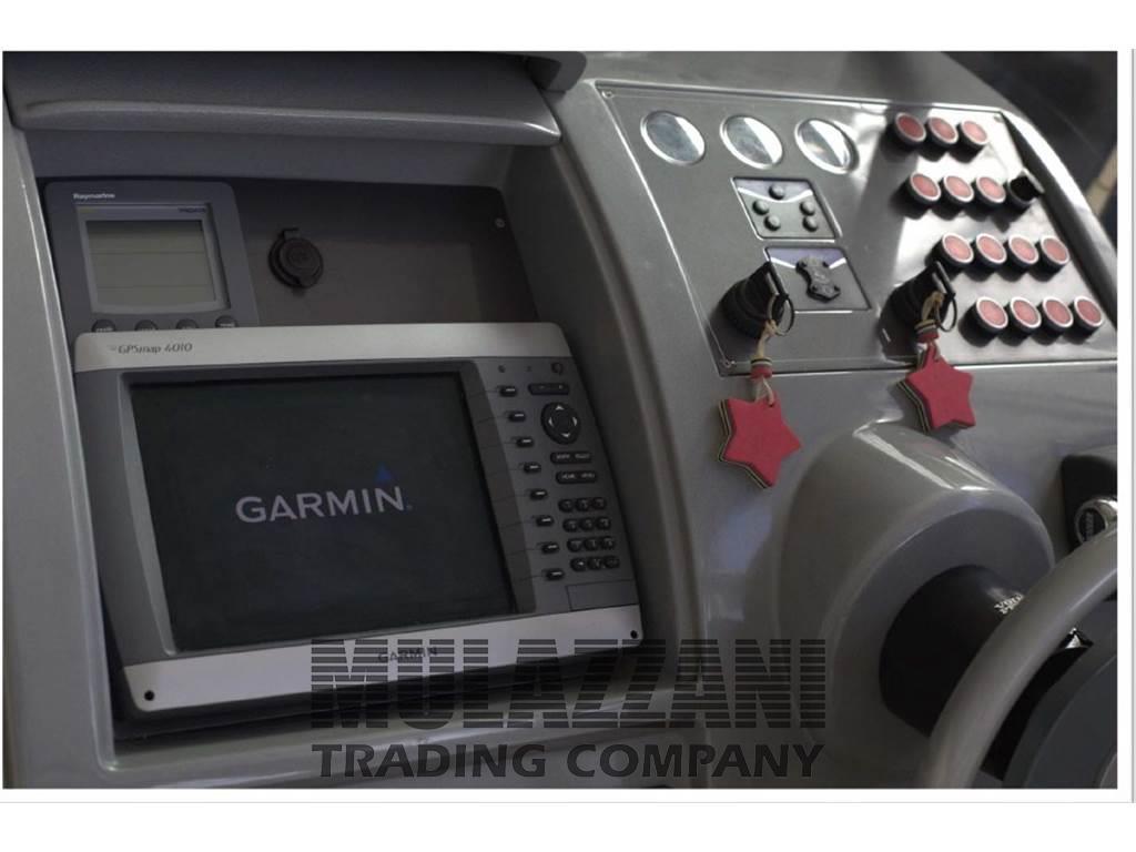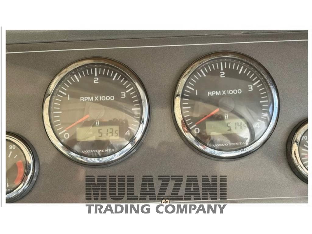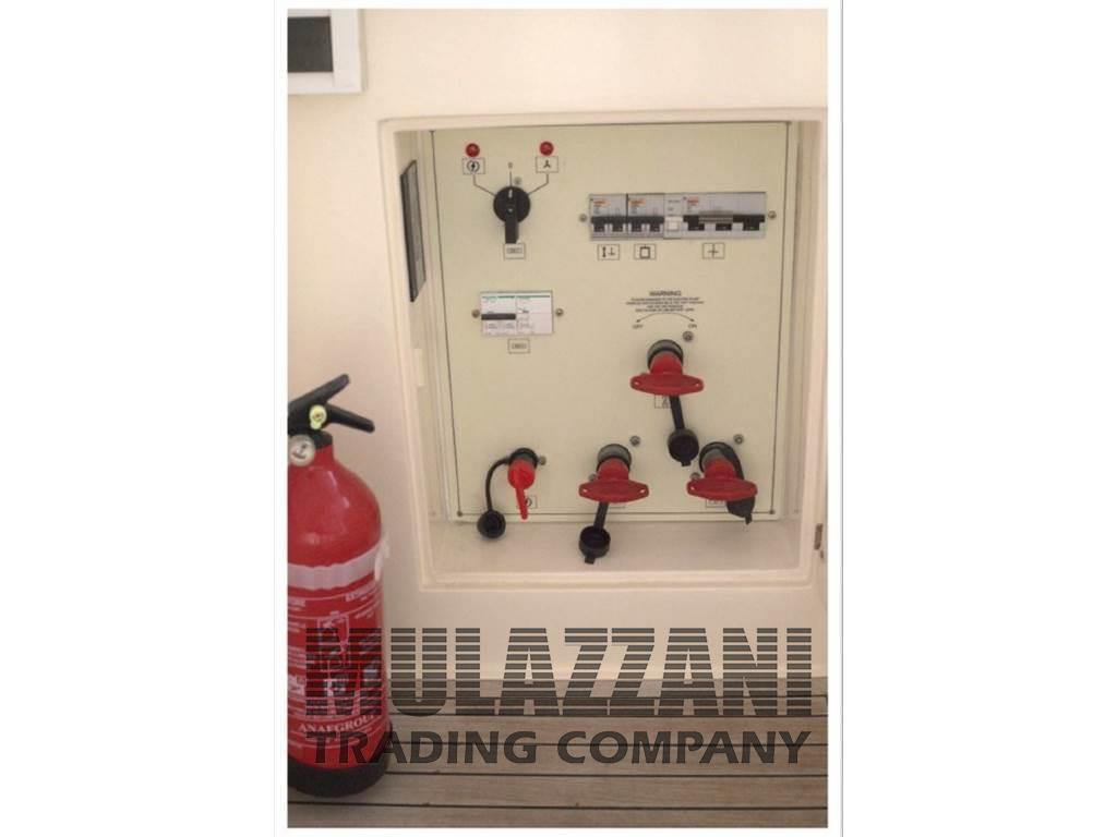 Allarme motore, Ancora (Bruce), Angolo barra, Autoclave, Batterie, Bussola, Caricabatterie (digitale Sbc), Comando motori elettronico (manette elettroniche), Contametri catena (Quick digitale), Display, Doccia esterna, Elica di prua - bow thruster (QL Volvo Penta), Faro orientabile (elettrico Marine Sport Line), Flap idraulici, Indicatori Flaps, Lavandino nel Pozzetto, Luci di cortesia, Passerella (Besenzoni idraulica telescopica), Piattaforma (teack), Pilota automatico (Tridata autohelm ST60+), Plotter con antenna GPS (Garmin GeoMap 4010), Pompa di sentina automatica, Pompa di sentina manuale, Porta ingresso, Pozzetto Teak, Presa 220V banchina, Presa acqua banchina, Radio VHF (Raymarine 240E), Rollbar, Salpa Ancore Elettrico, Scaletta da bagno, Tavolo pozzetto (a scomparsa), Tavolo Salone Abbattibile (trasformabile in matrimoniale), Tromba