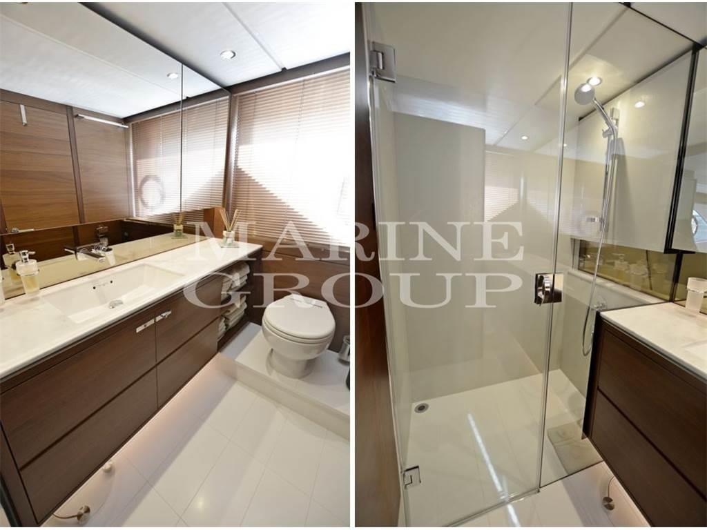 Stabilizzatore (Seakeeper 16) - Interni in noce satinato - Dissalatore - Eliche poppa e prua a velocità variabile - Aria condizionata caldo/freddo anche nei bagni - Aria conzionata cabina equipaggio - Passerella telescopica elettro-idraulica (3.5m) - TV SAT - Starlink - Tavolo sul Fly e pozzetto in teak - Zanzariere - Upgrade pelle divano dinette e divanetto a fianco alla consolle - Coperture esterne fly e pozzetto in Grey Sunbrella - USB addizionali - Tavolino interno custom made a fianco alla consolle - Altoparlanti in pozzetto e zona prua - TV a scomparsa in salone - Tv in cabina armatoriale - Cabina ospiti a prua con TV LED 28" e Radio/DVD/MP3 Fusion e Bluetooth - Cabina ospiti sinistra e dritta con TV LED 22" e Radio/DVD/MP3 Fusion e Bluetooth - TV in cabina equipaggio - Cabine ospiti sinistra e dritta con letti singoli convertibili in matrimoniale - Upgrade generatore Onan 19kW/50Hz - Generatore ONAN 11kw/50Hz addizionale - Luci di poppa per ormeggio (montate sulla struttura del Fly) - Lavatrice e asciugatrice separate - N.1 Telecamera in sala macchine collegata alla strumentazione - Cassaforte nella cabina armatoriale - Maniglie porte interne Sand Shagreen - Sistema Audio System che include: sistema Harman Kardon 5.1 Blu-ray (con Bluetooth) e altoparlanti KEF in salone - Piastra a induzione in cucina - Terza stazione di controllo in pozzetto - Addizionali 20m di catena ancora da 10mm per un totale di 80m - Pavimenti in noce V Groove in cucina e in consolle - Allestimento cabina equipaggio (con 2 letti singoli) - Combinazione bidet-toilet (incluso cabina equipaggio) - Hardtop sul fly con soft top elettrico (incluse luci regolabili) - Passaggi laterali e prua in teak - Pacchetto ALLURE con Hard Top che comprende dettagli con impunture a contrasto nei sedili consolle interna e fly, Upgrade per luci esterne, Consolle e mobile bar del fly e HT verniciati di grigio, Cuscineria esterna in schiuma reticolata e schienali regolabili a prua, Luci subacquee