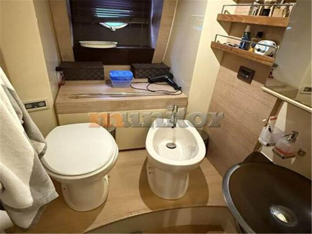 VHF, Ecoscandaglio, Aria condizionata, Riscaldamento, Pilota automatico, Radar, Doccia in pozzetto, Verricello elettrico, Impianto acqua calda, Serbatoio acque grigie, Caricabatterie, Bimini FLYBRIDGE, Cuscini di coperta, Passerella idraulica, Elica di prua, Elica di poppa, TV LCD, Antenna satellitare, Impianto audio, Parabordi, Fabbricatore di ghiaccio, Bussola, Scaletta da bagno, Dissalatore, Generatore, Comandi elettrici, Hard top, Piattaforma da bagno idraulica, WC elettrico, Lavatrice e asciugatrice, Batteria di servizio, Batteria motore, Teak in pozzetto, Teak a poppa