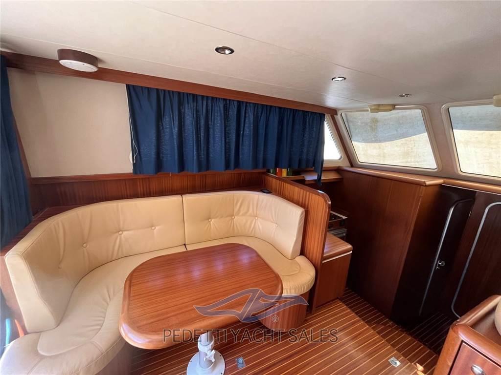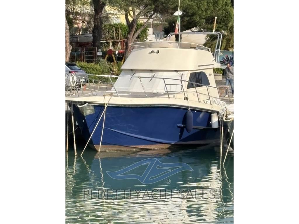 Calafuria 36 Fly, un'imbarcazione compatta ma sorprendentemente spaziosa, ideale per le crociere costiere con stile e comfort. Con i suoi 11,30-12,20 metri di lunghezza, questa barca a motore presenta un design elegante e funzionale, perfetto per godere del mare in totale relax. Dotata di due motori VM Motori da 350 CV, garantisce prestazioni brillanti con una velocità di crociera di circa 26 nodi e massima fino a 32 nodi. La navigazione è resa agevole e sicura grazie alla doppia timoneria, flybridge panoramico e strumenti elettronici completi come chartplotter, pilota automatico e AIS. Gli interni sono curati con attenzione ai dettagli: due cabine accoglienti, un bagno, dinette spaziosa, cucina con fornelli, frigorifero e microonde. L'uso di materiali pregiati come la tappezzeria in alcantara e il pavimento in legno conferiscono un'atmosfera raffinata e confortevole. A bordo non mancano soluzioni pratiche come ampi camminamenti laterali in teak, doccia esterna, tavolo e cuscineria completi in pozzetto e fly, oltre a dispositivi di sicurezza moderni e impianti efficienti per acqua ed elettricità. Perfetta sia per giornate di pesca, uscite in famiglia o relax con amici, la Calafuria 36 Fly si distingue per solidità, comfort e prestazioni, ideale per chi sogna la libertà del mare senza rinunciare al lusso e alla praticità.