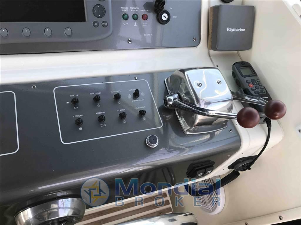 Allarme fumo/gas, Allarme motore, Allarme sentina, Ancora, Apertura Vano Motore Elettrica, Autoclave, Autogonfiabile, 5 Batterie, Bussola, Caricabatterie, Cavo corrente di banchina, Contamiglia, Corrimano, Display, Doccia esterna, DSC vhf, Ecoscandaglio, Elica di prua - bow thruster, 2 Elica di rispetto, Fari fissi a poppa, Flap idraulici, Impianto antincendio, Indicatori Flaps, Lavandino nel Pozzetto, Log, Luci di cortesia, Luci di navigazione, Mappe e guide, Monitor dei consumi, Motore fuoribordo per tender, 6 Parabordi, Passerella, Piattaforma, Pilota automatico, Plotter con antenna GPS, Pompa di sentina automatica, Pompa di sentina manuale, Porta ingresso, Pozzetto Teak, Presa 220V banchina, Presa acqua banchina, Quadro comandi, Radar, Radio VHF, Rollbar, Salpa Ancore Elettrico, Scaletta da bagno, Sedile Copilota, Sonar, Tavolo pozzetto, Tender, Tromba, Winch tonneggio di prua