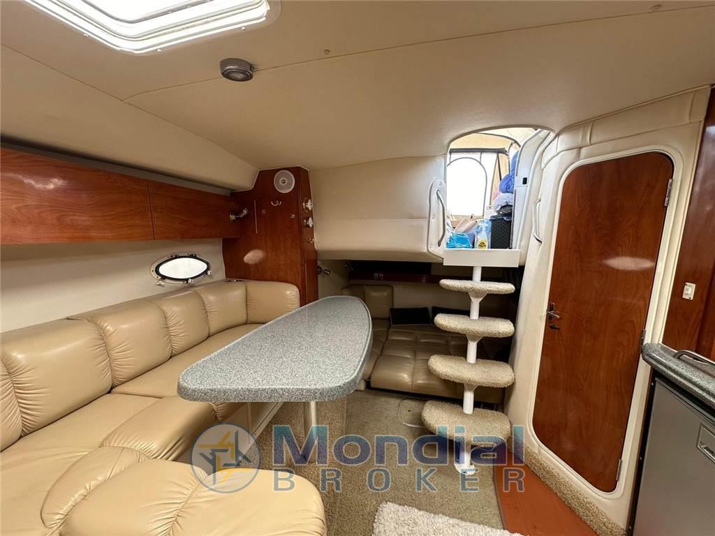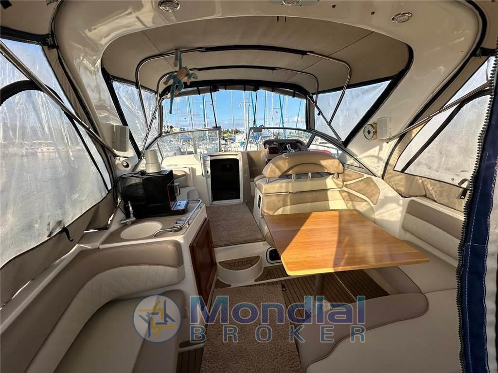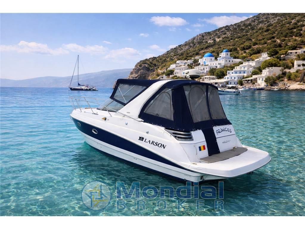 Il Larson 330 Cabrio è un molto popolare express cruiser americano apprezzato in particolar modo per gli interni spaziosi e un ottimo rapporto qualità prezzo. Frances è estremamente equilibrato, apprezzato per la sua capacità di massimizzare gli spazi e offrire prestazioni solide. I pregi del modello sono relativi all'abitabilità ed al layout interno, in cui la gestione degli spazi si esprime al meglio delle possibilità di barche di questa categoria. La cabina è sorprendentemente ariosa, con un'altezza interna che permette di muoversi agevolmente. Dispone di una dinette trasformabile in V-berth (letto di prua), una cabina di poppa (mid-cabin) spaziosa e un divano supplementare, offrendo diverse configurazioni per il pernottamento. Frances ha una cucina completa equipaggiata con ampi mobili, frigorifero, forno a microonde, fornello a due fuochi e macchina del caffè, ideale per crociere a medio raggio. Un design conviviale è progettato per la socializzazione, con numerose sedute e schienali confortevoli. Wet Bar integrato: la presenza di un lavello, una ghiacciaia e un mobile bar esterno facilita l'intrattenimento all'aperto. Il design permette un accesso sicuro e agevole al prendisole di prua tramite il parabrezza apribile. Equipaggiata con motori twin Volvo Penta D3 del 2017, la barca può raggiungere velocità massime vicine ai 35 nodi, prestazioni notevoli per un cruiser di queste dimensioni. Lo scafo è progettato per mantenere una buona tenuta di mare, garantendo una navigazione asciutta e sicura anche in condizioni non ottimali. Il vano motori è spazioso e dotato di sollevamento elettrico, semplificando notevolmente le operazioni di manutenzione ordinaria. Dotata di generatore e aria condizionata che ne aumentano il valore per chi pratica il campeggio nautico.
