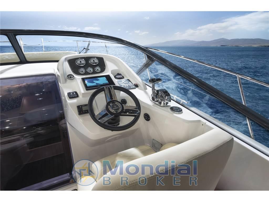 Allarme motore, Allarme sentina, Autogonfiabile, Doccia esterna, Elica di prua - bow thruster, Flap idraulici, Impianto antincendio, Luci di cortesia, Monitor batteria, Parabordi, Piattaforma, Pompa di sentina automatica, Pompa di sentina elettrica, Pompa di sentina manuale, Presa 220V banchina, Rollbar, Salpa Ancore Elettrico, Scaletta da bagno, Tavolo pozzetto, Tavolo Salone Abbattibile, Tromba.