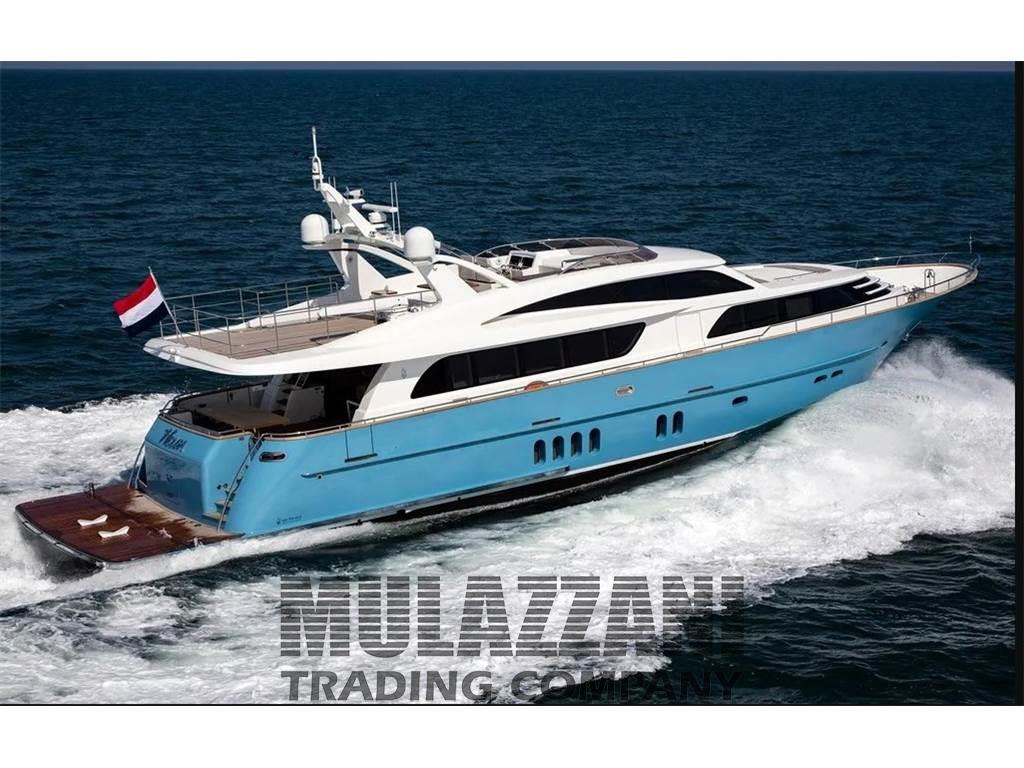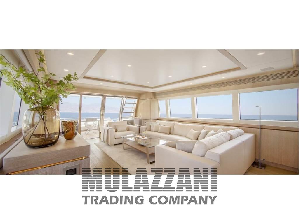 AIS (950 A e B), Allarme fumo/gas, Allarme motore, Ancora (inox 150Kg+catena inox 150m 13 mm), Autoclave (Gianneschi), 8 Batterie, Bussola, 3 Caricabatterie (Mastervolt), Colorazione speciale (scafo azzurro), Comando motori elettronico, Computer di bordo, 2 Contametri catena, Contamiglia, Display, Doccia esterna, Ecoscandaglio, Elica di poppa - stern thruster, Elica di prua - bow thruster, GPS, Gruette per tender su fly, Interfono, Lavaggio catena, Luci di cortesia, Luci di navigazione, Luci subacquee (Sea Visione Led), Monitor dei consumi, Passerella (idraulica Opacmare), Piattaforma (Opacmare up&down), Pilota automatico, Plotter con antenna GPS, 4 Pompa di sentina automatica (Jabsco), Pompa di sentina elettrica, Pompa di sentina manuale, Ponte in teak, Porta ingresso, Porta laterale, Pozzetto Teak, Presa 220V banchina, Presa acqua banchina, Quadro comandi, Radar, Radio VHF, 2 Salpa Ancore Elettrico (Maxwell 3500W), Scaletta da bagno (retrattile), Stabilizzatori (Seakeeper 35 electric Gyroscopic), Stazione vento, Tavolo pozzetto (x 8 persone), Tender (Williams Sportjet 395), Tromba