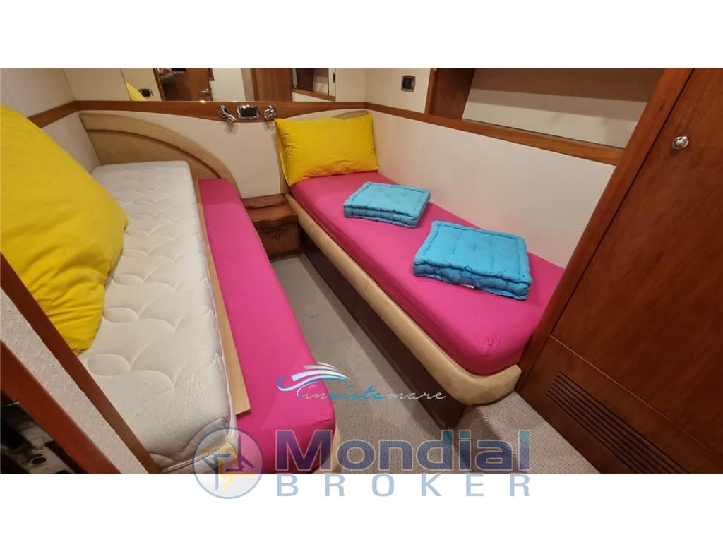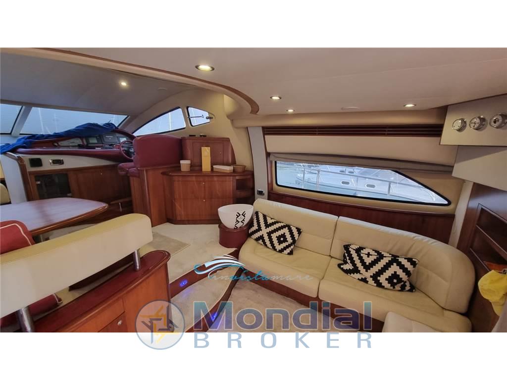 Acqua Calda, Altoparlanti, Antenna Satellitare TV, Aria condizionata (caldo/freddo), BBQ/ Grill (sul fly), Bimini, Boiler, Clima reversibile, Copripozzetto, Cucina, Cuscineria di poppa, Cuscineria di prua, Cuscineria fly, Cuscineria Pozzetto, Dotazioni di sicurezza entro 50 miglia, Frigorifero esterno, Frigorifero interno, Impianto acque nere, Impianto TV, Indicatore del serbatoio del carburante, Indicatore del Serbatoio dell’Acqua, Indicatore del Serbatoio delle Acque Reflue, Indicatore della pressione dell’olio nel motore, Indicatore della temperatura del motore, Lavastoviglie, Lavatrice, Microonde, Oscuranti, Pavimento interno in legno, Piastra in vetroceramica, Prese interne 12v, Prese interne 220v, Radio AM/FM, Serbatoio Acque Nere, Stereo, Teli copri finestra, Telo Copertura Fly, TV, 2 WC marino elettrico