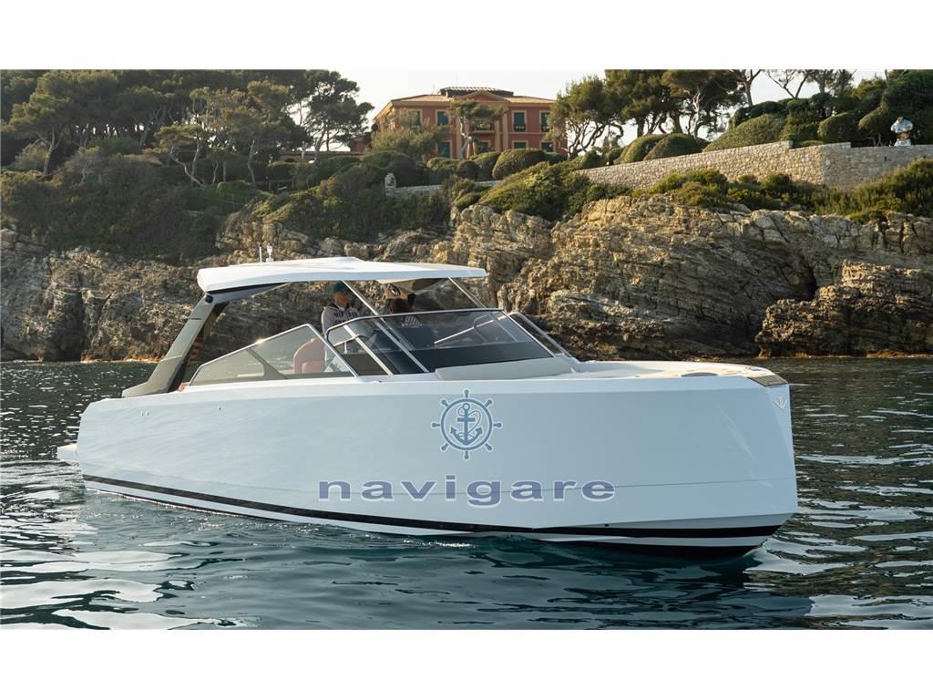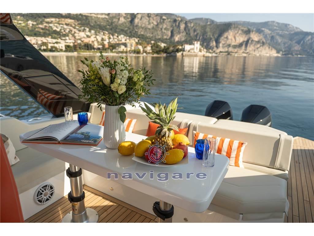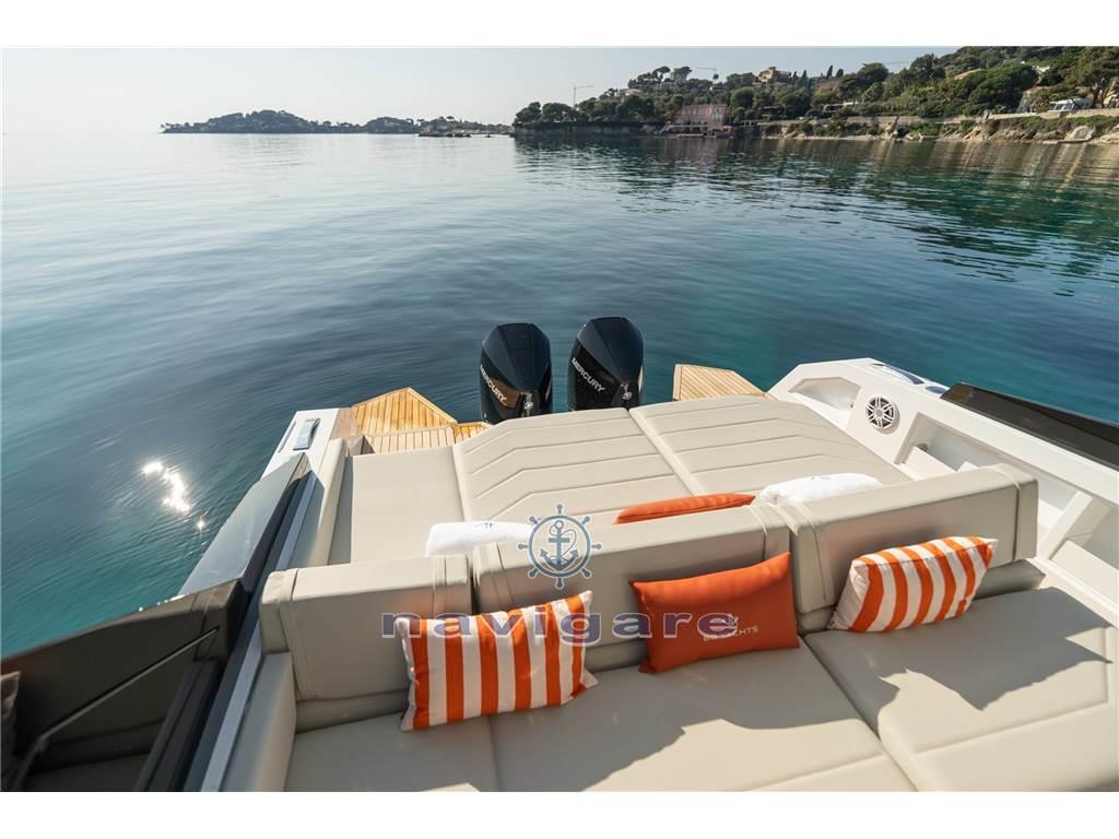 Bimini, Boiler, Cappottina, Cucina, Cuscineria completa, Cuscineria di poppa, Cuscineria di prua, Frigorifero esterno (49 L), Frigorifero interno (50 L ), Indicatore del serbatoio del carburante, Indicatore del Serbatoio dell’Acqua, Indicatore della pressione dell’olio nel motore, Indicatore della temperatura del motore, Inverter (2000 W), Materassi, Pavimento interno in legno, Prese interne 12v, Prese interne 220v, Radio AM/FM (FUSION con 6 altoparlanti + sub-woofer + amplificatore), Riscaldamento (SCALDABAGNO), Stereo, Teli chiusura T-Top, WC marino elettrico, Il cantiere è nuovo, un piede in Francia, dove ha sede, e uno in Italia, dove le barche vengono costruite. In particolare, quelle Þiù grandi, saranno realizzate a Viareggio. In Costa Azzurra ho avuto modo di testare il 44' Ischia, che è il primo modello, ma stanno già realizzando un 35'e nei prossimi mesi sarà la volta del 66'.
