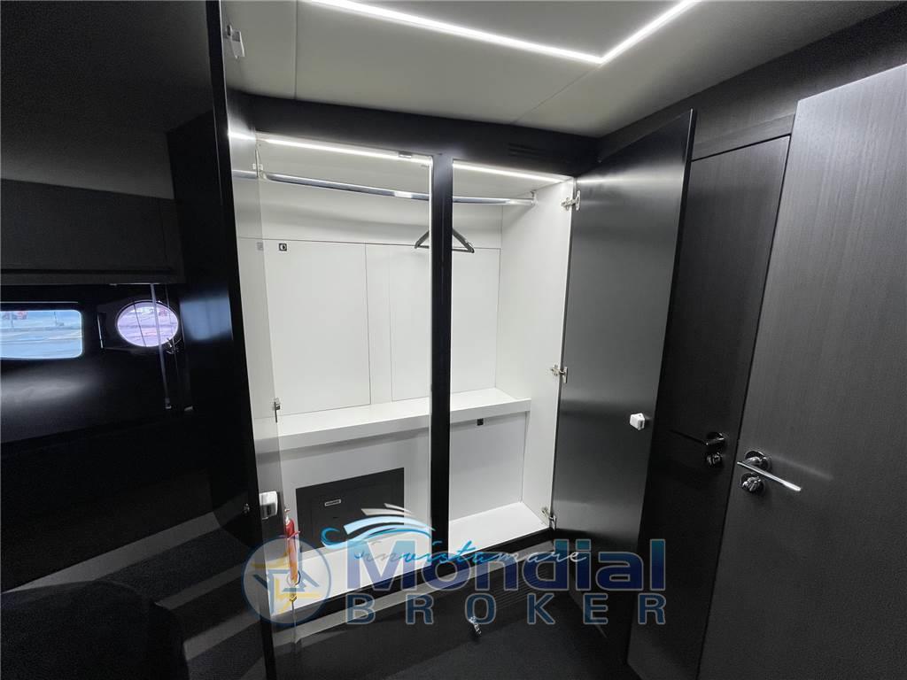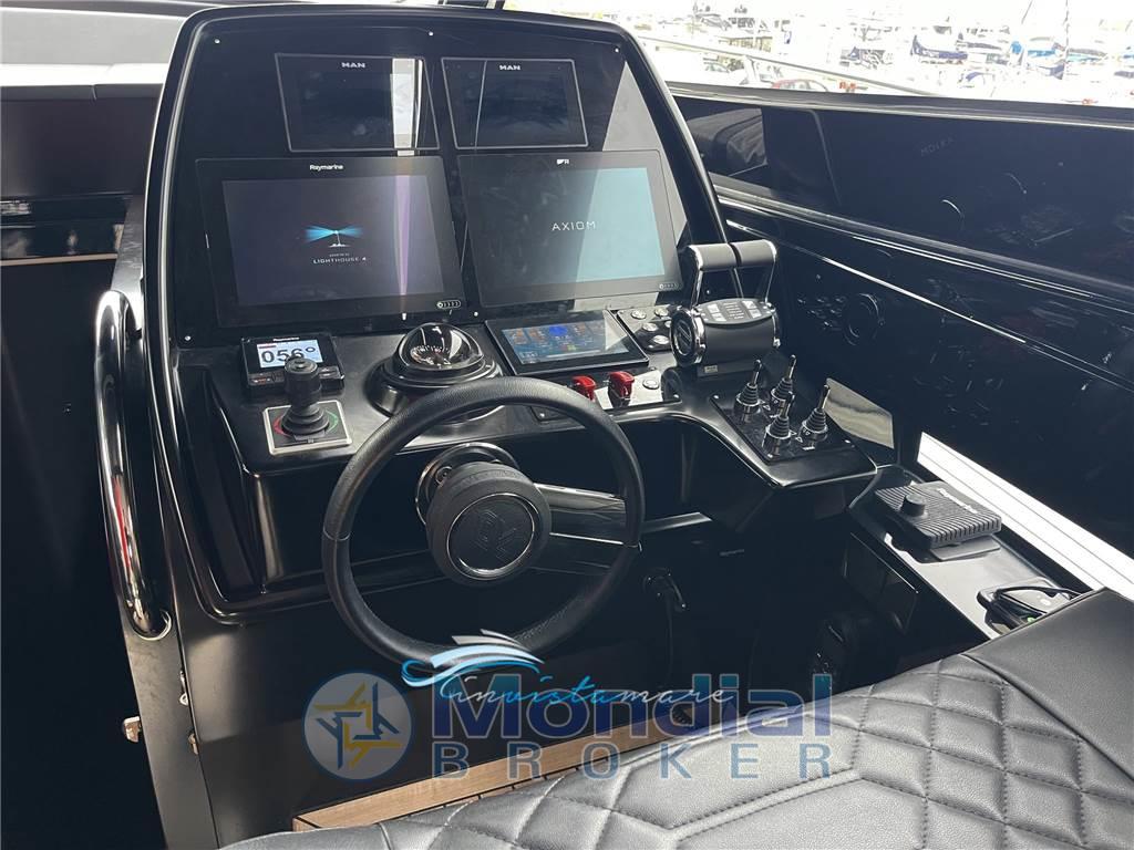 Allarme fumo/gas, Allarme motore, Allarme sentina, Ancora, Apertura Vano Motore Elettrica, Batterie, Bussola, Camminamenti laterali in teak, Caricabatterie, Colorazione speciale, Comando motori elettronico, Computer di bordo, Contametri catena, Contamiglia, Corrimano, Corrimano di sicurezza, Display, 2 Doccia esterna, DSC vhf, Ecoscandaglio, Elica di poppa - stern thruster, Elica di prua - bow thruster, Faro orientabile, Flap elettrici, Flap idraulici, GPS, Hard top, Impianto antincendio, Indicatori Flaps, Joystick (Trim e flap), Lavandino nel Pozzetto, Luci di cortesia, Luci subacquee, Mappe e guide, Monitor batteria, Passerella, Pilota automatico, Plotter, Plotter con antenna GPS, Pompa di sentina automatica, Pompa di sentina elettrica, Pompa Lavaggio Ponte, Ponte in teak, Pozzetto Teak, Presa 220V banchina, Presa acqua banchina, Radio VHF, Radio VHF (Raymarine), Salpa Ancore Elettrico, Scaletta da bagno, Sedile Copilota, Tavolo pozzetto (Apribile), Tromba, 2 Winch Elettrico
