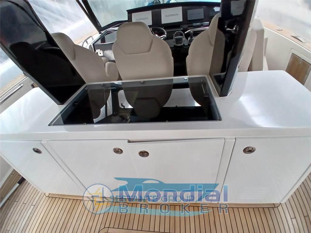 Allarme motore, Allarme sentina, Alternatore, Ancora, Angolo barra, Antenna radar, Apertura Vano Motore Elettrica, Auto Dynamic Trim Interceptor, Autoclave, Batterie, Bussola, Camminamenti laterali in teak, Caricabatterie, Cavo corrente di banchina, Colorazione speciale, Comando motori elettronico, Contametri catena, Contamiglia, Display, Doccia esterna, DSC vhf, Ecoscandaglio, Elica di prua - bow thruster, GPS, Joystick, Lavandino nel Pozzetto, Luci di cortesia, Luci di navigazione, Monitor dei consumi, Piattaforma, Pompa di sentina automatica, Pompa di sentina elettrica, Pompa di sentina manuale, Ponte in teak, Porta ingresso, Pozzetto Teak, Presa 220V banchina, Radar, Radio VHF, Salpa Ancore Elettrico, Scaletta da bagno, Sedile Copilota, Stabilizzatori, Tavolo pozzetto, Tromba, T-Top